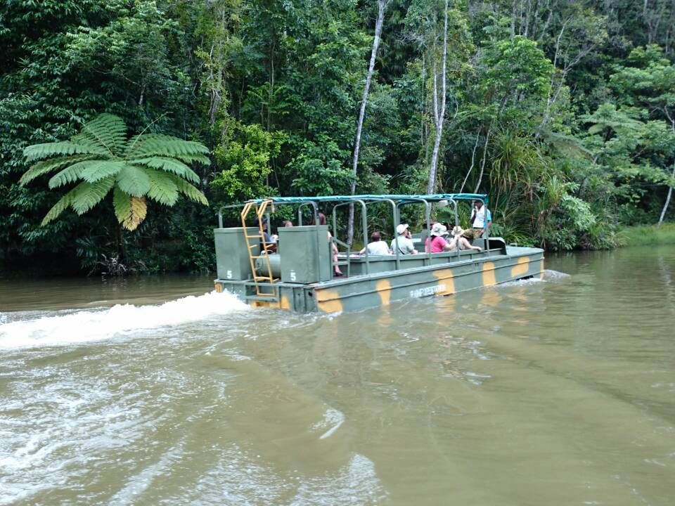 熱帯雨林をスカイレールで上から見渡せる。あっという間でしたが、感動感動でした!アーミーダックは子供たちが大喜び♪水陸両用車に乗って、大満足です!また、そこで食べたお昼のビッフェにカンガルーとクロコダイルのお肉があり、これまた大満足☆オーストラリアならではの食料を口にできて、嬉しかったです。次に、キュランダ村でのフリータイム。ここでは時間が少なく、ショッピングはできませんでした。帰りは列車に乗り、とても素晴らしい景色を見ることができました。この最高の時間を過ごすことができたのは、日本人ガイドさんのエリさんのおかげです。笑顔で楽しくガイドしていただき、本当に感謝します。ありがとうございました。
