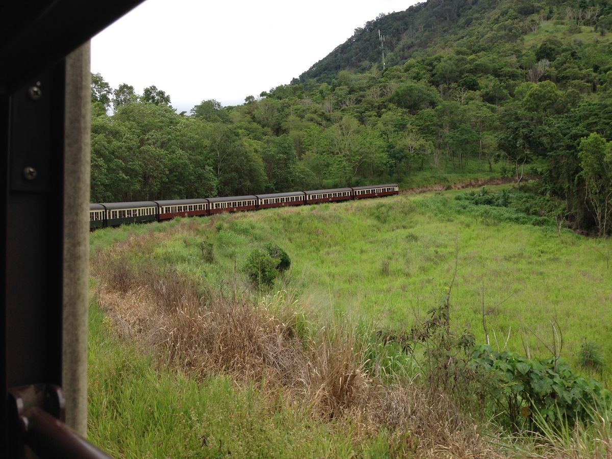 スカイレールでは、熱帯雨林を眼下に見下ろし、優雅な気分に浸りながらキュランダを目指しました。キャランダでは、オーストラリアでもほとんど許されていないコアラのダッコが人気でしたし、アーミーダックバスによるちょっとしたジャングル探検も面白かったです。帰りの列車ではゴールド車両に乗りましたので、ゆったりとした椅子(リクライニングはなし)で外の写真も沢山取れました。また、旅の最後にお酒が飲み放題でしたので、これも嬉しかったです。