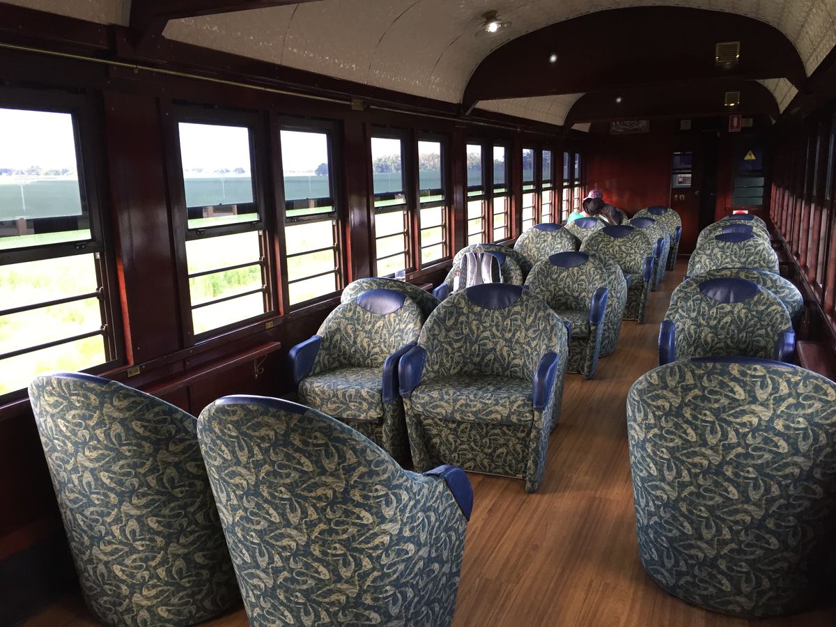帰りの列車は 「世界の車窓」そのものでした。列車の外内もレトロっぽく ゆっくりゆっくり進み2時間の列車の旅