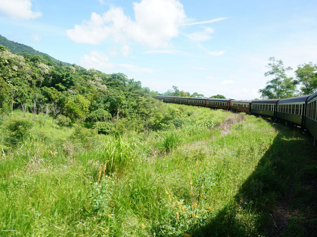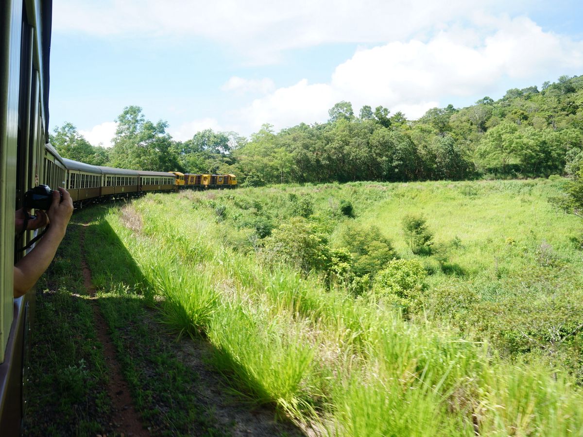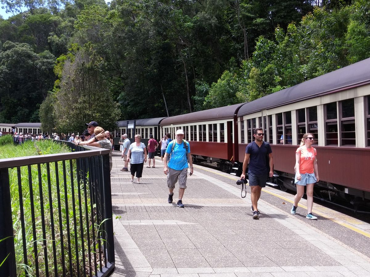 春休みに家族で参加しましたキュランダ列車に乗ってキュランダ村に行きました。キュランダ列車は冷房が効きにくく暑かったです。ツアーで席が限定されているようで、つめつめで苦しかったです。キュランダ村観光楽しかったです。アイスクリームも美味しかった!アーミーダックが一番楽しめました。青い蝶も3匹も見れました。インディージョーンズかディズニーのジャングルクルーズのようでした
