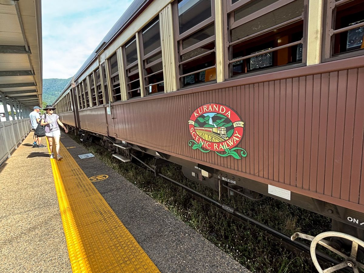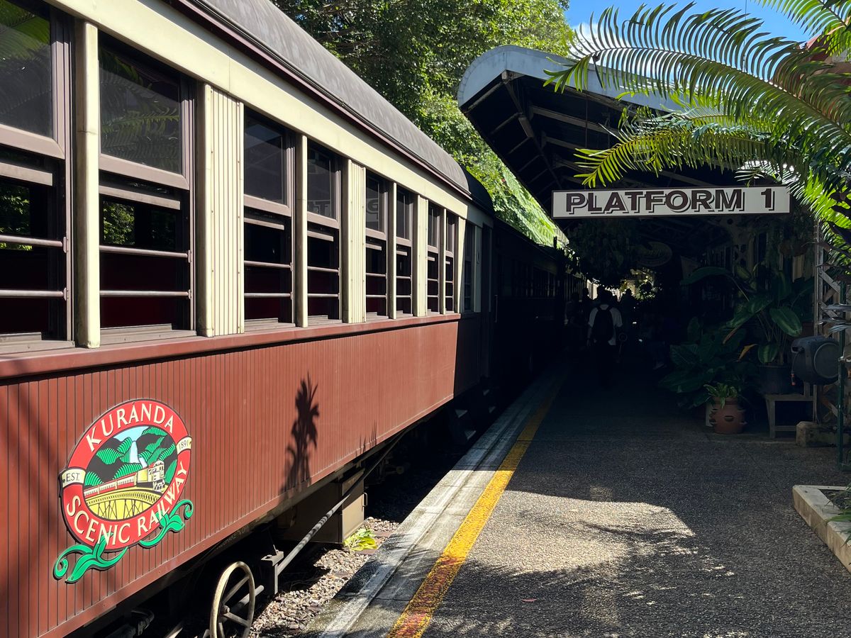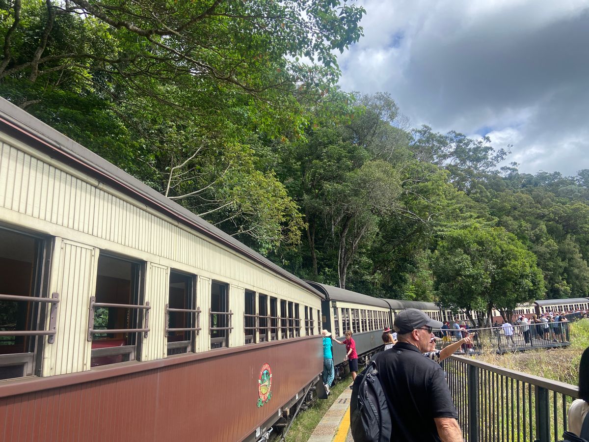 1.5時間ほど鉄道に揺られながらキュランダ村へ。座席はランダム?自分たちは13両目と後ろの方だったので、いい写真がとれました。