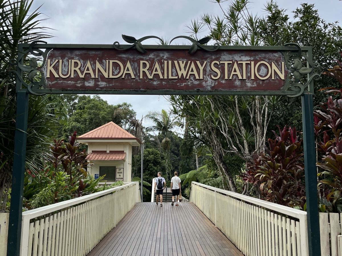 キュランダ鉄道に乗ってキュランダ駅(市街)迄移動。鉄道に乗っている間は雰囲気を楽しめる。途中の下車駅では大滝が見られる。感動する体験になった。