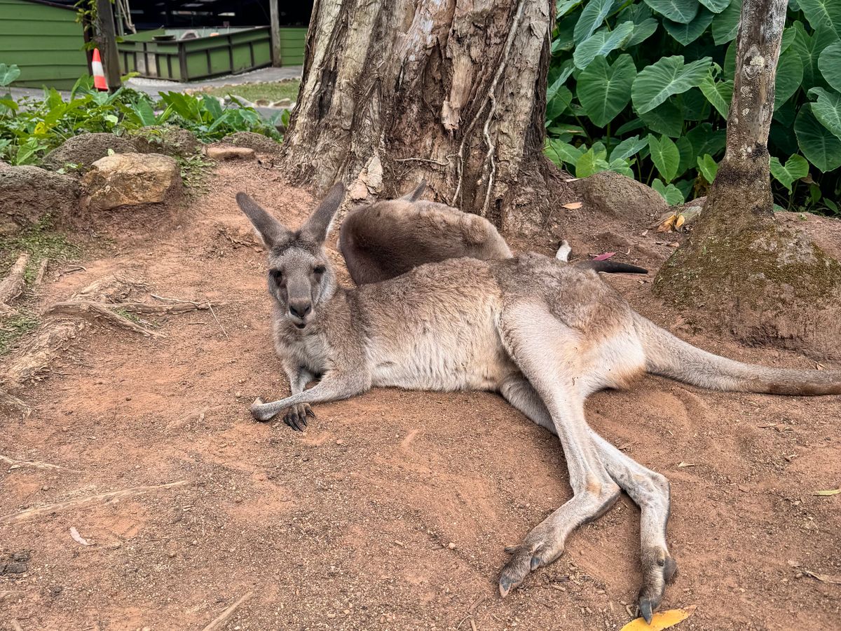 オレンジ様、この度はレインフォレステーションにお越しいただき誠にありがとうございました。カンガルーたちのエサは受付にて$2で販売しています。このお金は姉妹施設であるポートダグラスにあるワイルドライフ・ハビタットという動物園の、けがをした野生動物のリハビリセンターの運営費への寄付になっています。ご協力誠にありがとうございました。ケアンズではコアラも繁殖期が決まっていないため、赤ちゃんを見れる機会は少ないのですが、現在ハビタットでは生後9か月の赤ちゃんが見られます。小さなぬいぐるみのようなかわいらしさです。