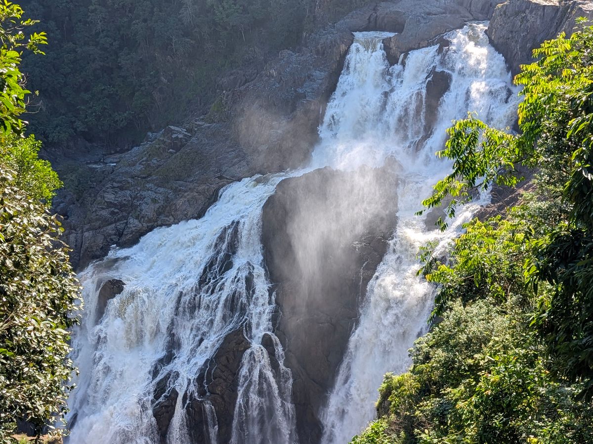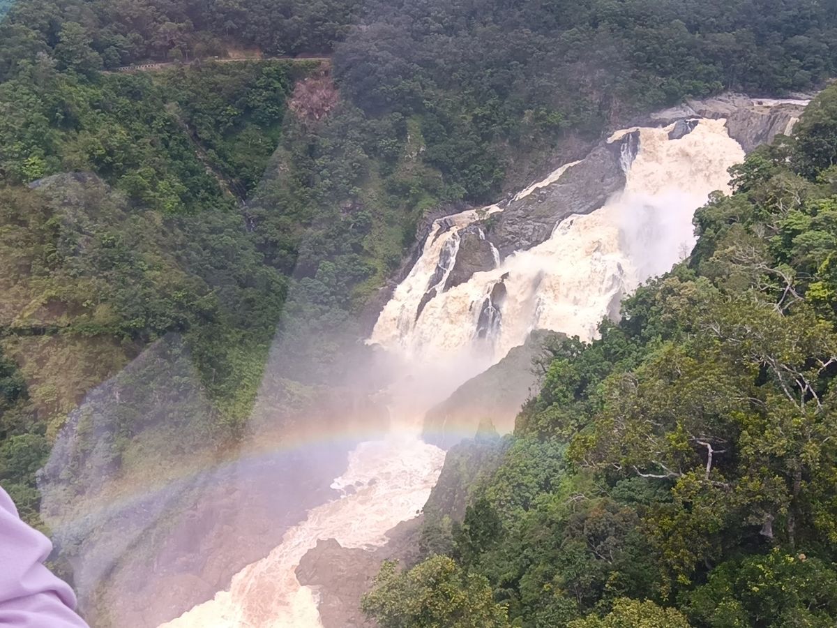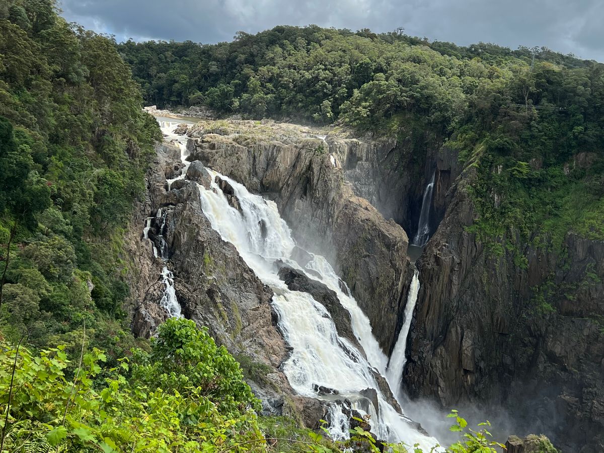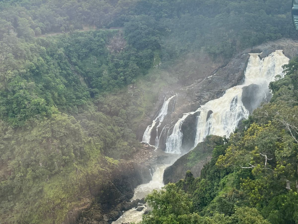 雨季のため欠便を心配していましたが、レトロなキュランダ鉄道でゆっくりと時を過ごし、バロン滝が大瀑布となって非常に迫力があり、キュランダ村ではアーミーダックで、雨中の熱帯雨林を堪能できました。