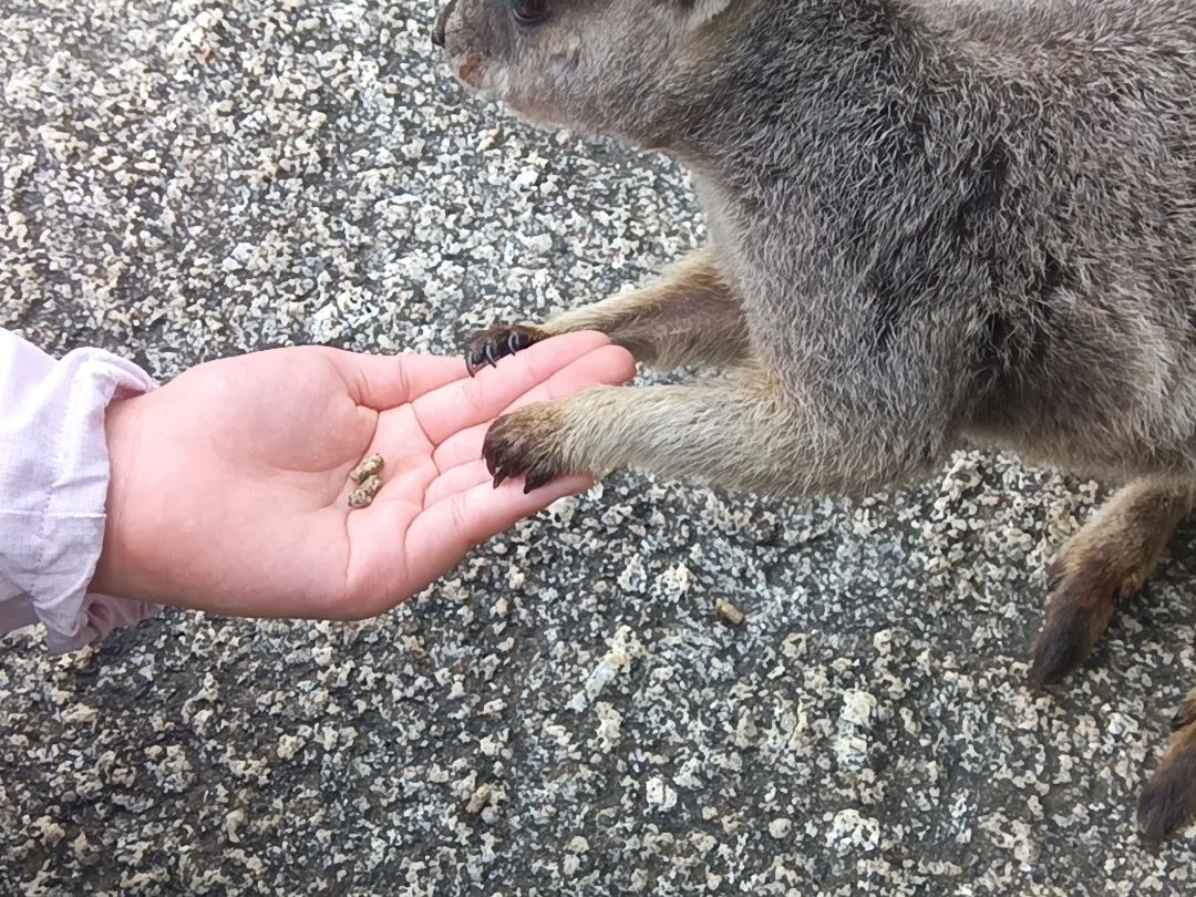 また、ワラビーをなでたり手で餌をあげたりすることができ、子どもたちは大喜びでした。