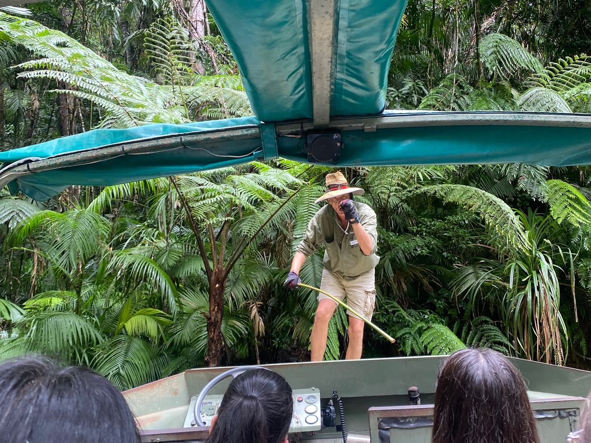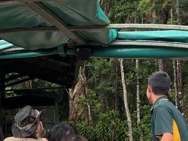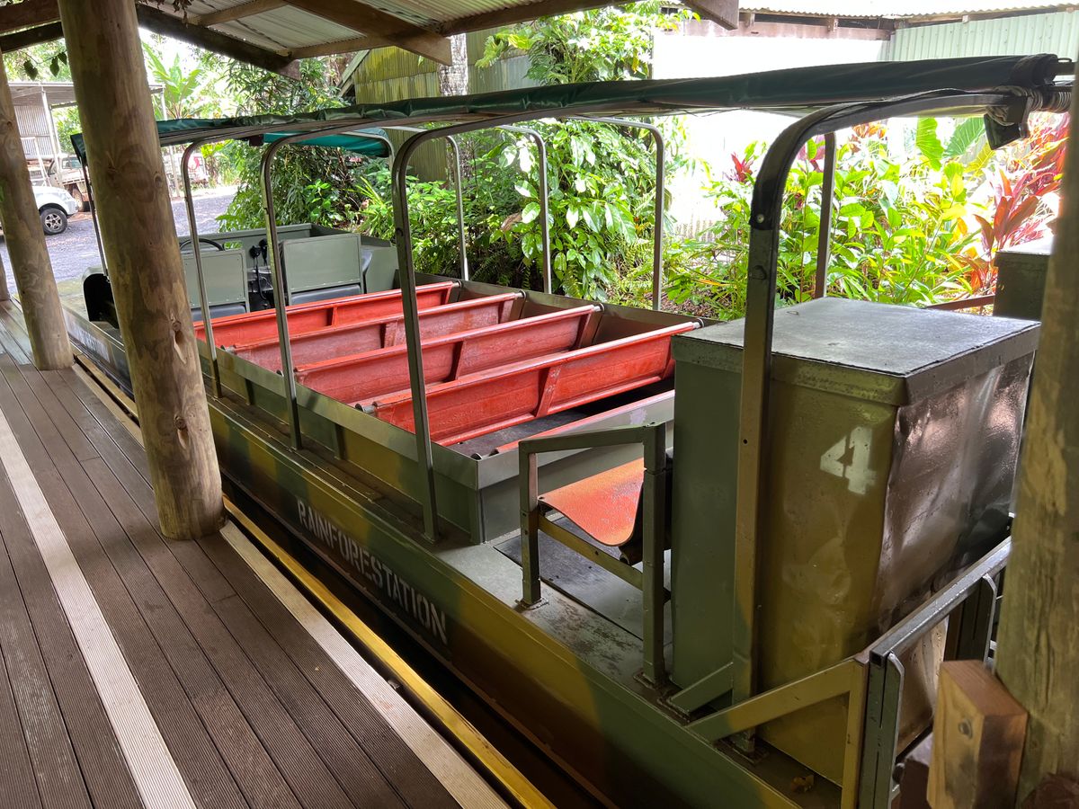 まさかのキュランダ鉄道が運休。往復スカイレールでした。当日朝、日にち変更も可能ですがどうしますか?と日本語スタッフからお迎え時に案内がありました。がっかりはしましたが、変更はせず参加しました。ですが、結果的に案内スタッフの素晴らしさに救われました。雨季に負けない笑顔、芸人さんのようなマイクパフォーマンス(うるさくはないですよ)、サンシャインはありませんでしたが、優しさに感動。アーミーダックが特に目立って良かったです。