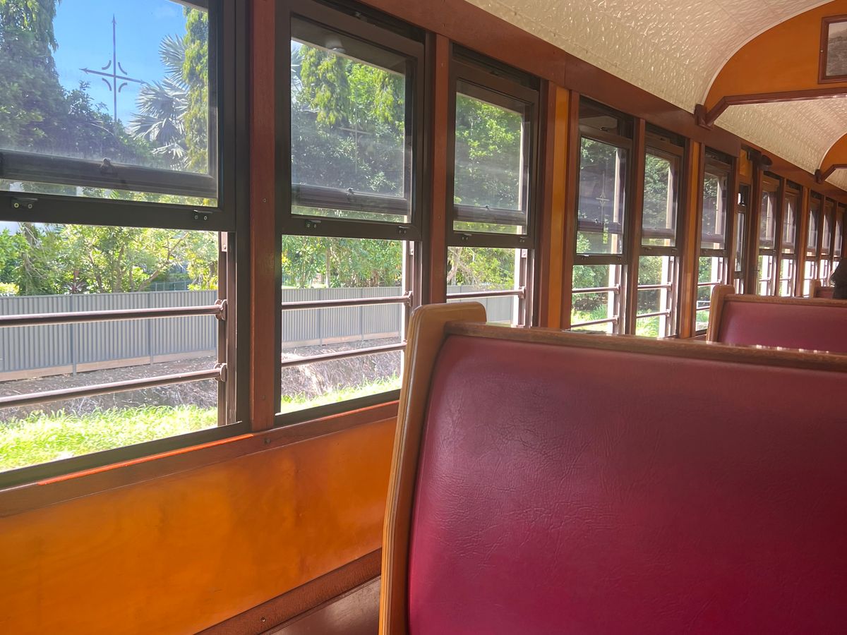 キュランダ鉄道の中は本当に暑くて、進行方向でない席は