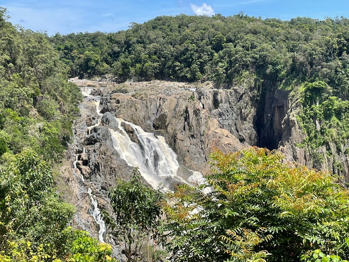 雨季に入り、バロンの滝のところでザーっと降られました。傘を持参していたので車外に少し出て鑑賞できましたが、持っていない方は車窓から眺めるにとどまっていました。キュランダは、とてもユニークな村で散策を楽しめました。