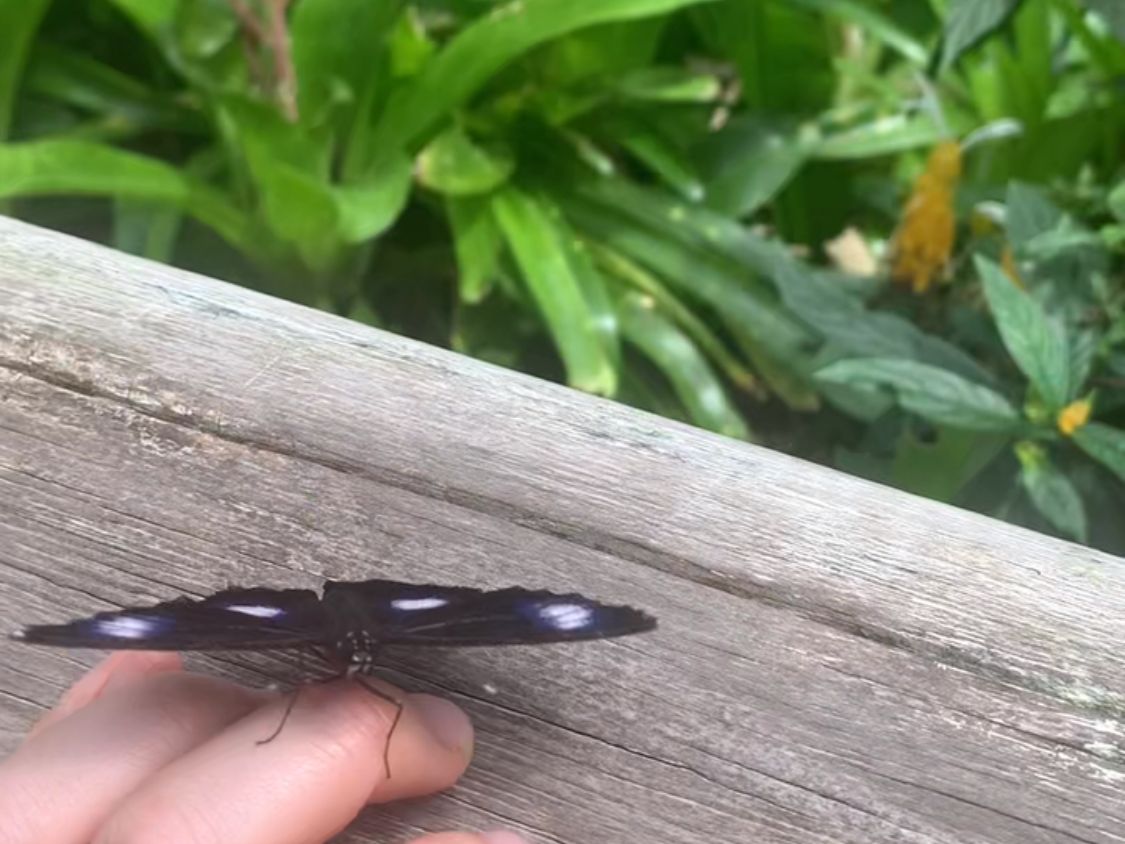 いろんな植物に蝶々がたくさんいて、肩や指にとまってくれたりと嬉しかったです。