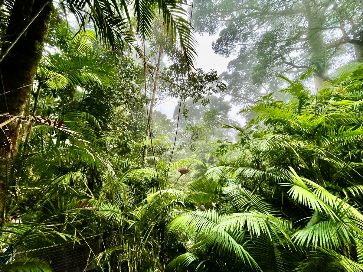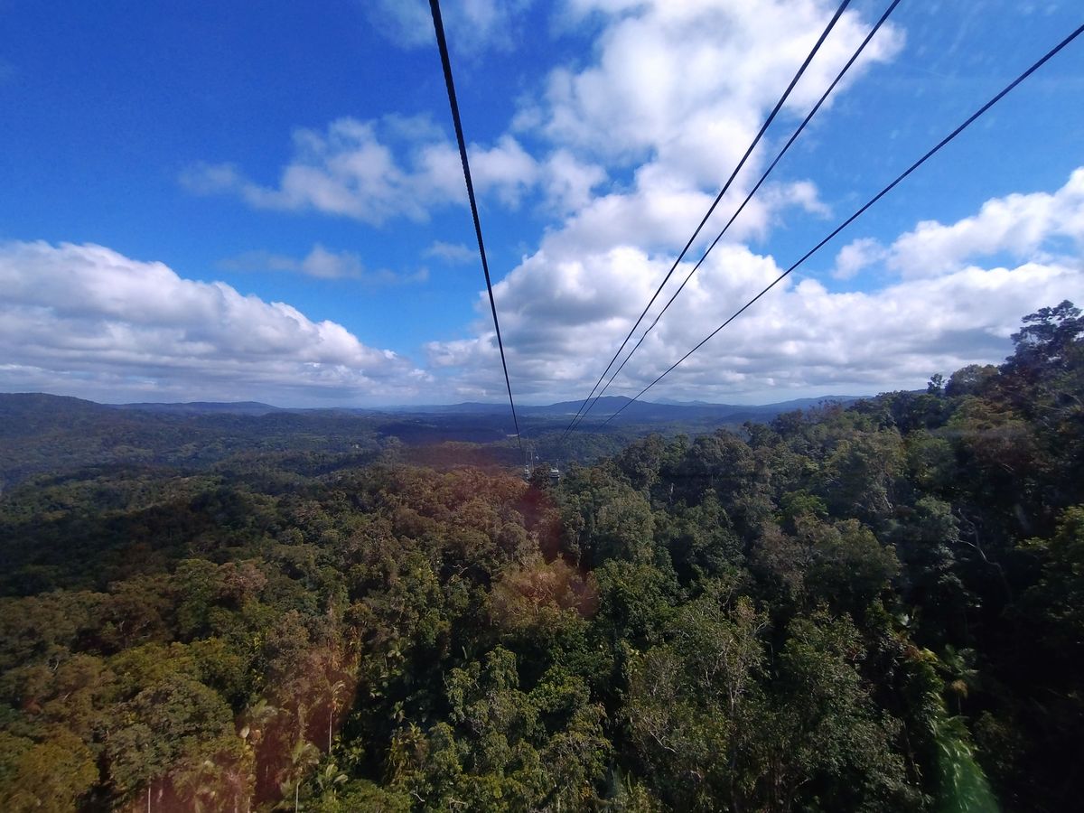 我が家が行った日はケアンズは晴れてましたが、キュランダまでのスカイレールが靄っていました。