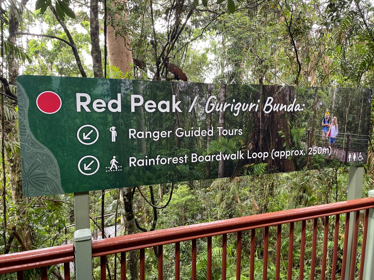 帰りのスカイ鉄道ゴールドクラスはおすすめです。指定席なので焦る必要もなく、チーズとドリンクとアイスクリーム、ポストカードとボールペンのお土産付きです。バロン滝駅で10分ほど下車して写真撮影。その後のUピンカーブはゆっくり走ってくれるもののあっという間なので注意が必要です。フレッシュウォーター駅では欧米人のツアーの人達がほとんど下車していましたが、終点のケアンズ駅で降りました。