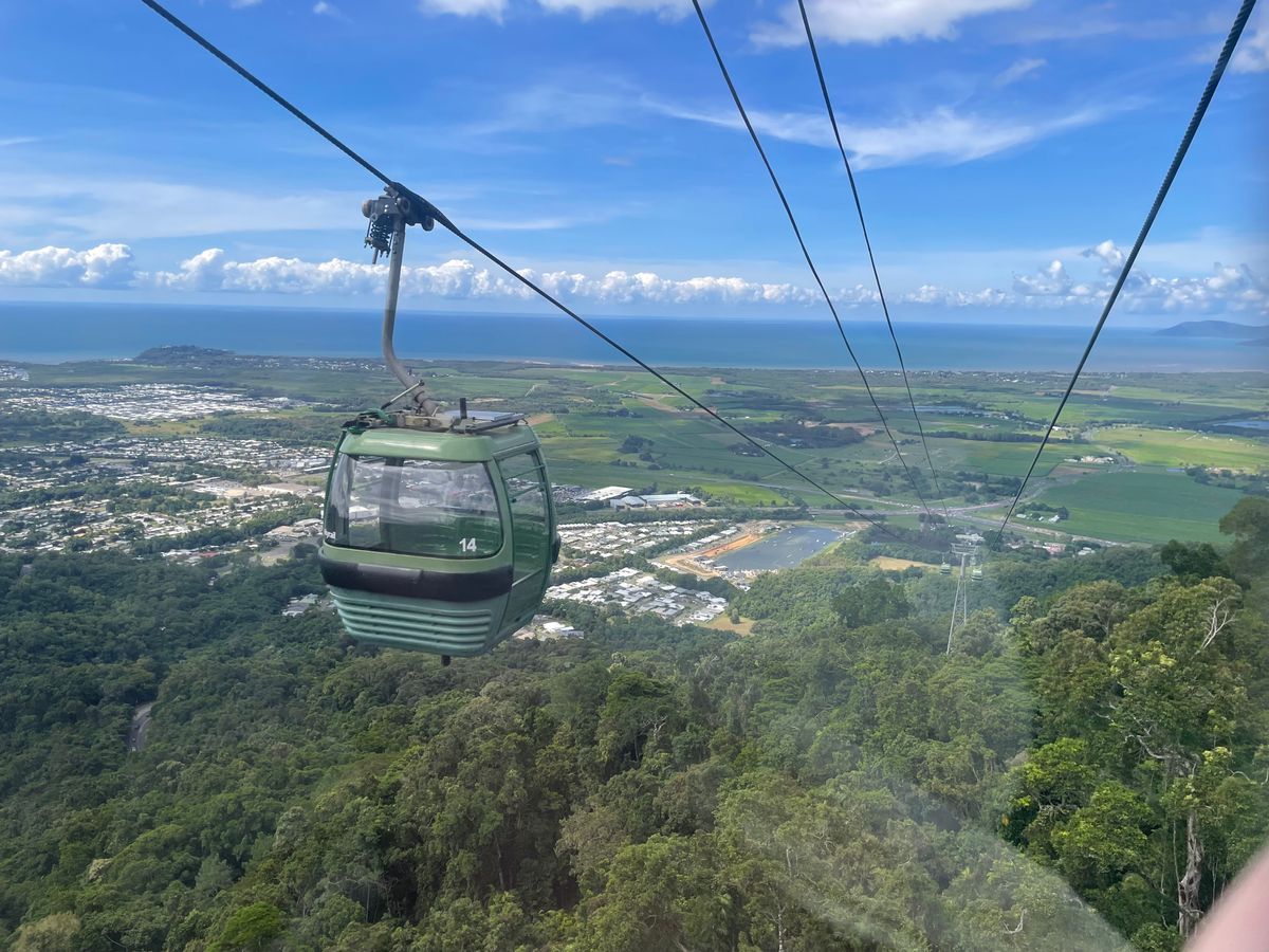 以前行きはスカイレール帰りはキュランダ鉄道でキュランダを訪れた事がありましたが、鉄道はとても時間がかかり、出発時間も決まっている為、とても疲れましたが、今回は行き帰りとも、スカイレールなので、帰りたい時間に帰る事ができ、ちょうどセントラルに向かうバスに乗れたので、時間のロスもなく快適でした。スカイレールから、3回見ると幸せになるという青い蝶々🦋が7回も見えて、それを探すのも楽しかったです。