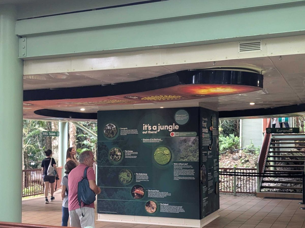 これからどうしたら良いか?と着いた瞬間は心配でしたが、杞憂でした。とてもわかり易くオージーのスタッフも笑顔で案内してくれました。貰ったチケットを見れば,帰りのキュランダ高原鉄道の発車時刻と号車,席番まで記載されて心配無しでした。世界遺産のレインフォレストに感動しながらの散歩もグーでした。