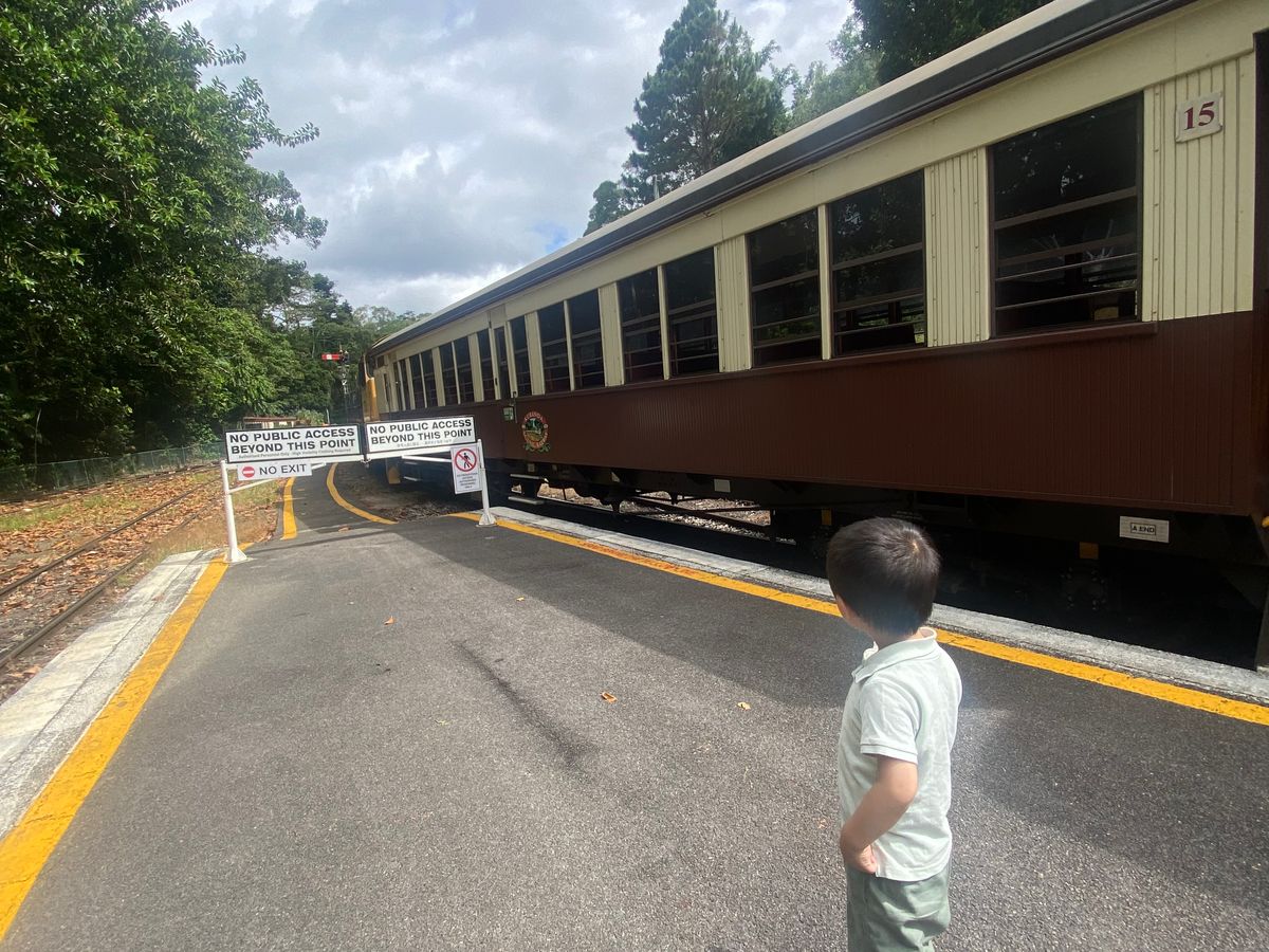 行き→スカイレール、帰り→キュランダ鉄道のプランで予約しました。前日や当日の朝、鉄道にいたっては乗る数時間前に、バウチャーや座席のシート番号の案内がメールで届くので、受信できるネット環境にしておくのが必須かと思います。行きのスカイレールはホテルの近くから乗り場まで送迎バスでしたので、子連れでも移動が楽でした。バスの集合場所が宿泊ホテルと違ったので間違えないかだけが不安でしたが、同じようにバスに乗る方が沢山待っておられたので迷いませんでした。送迎バスもスカイレールも鉄道もベビーカーは問題なく乗せられます。鉄道は、改札はありませんし切符の確認もありませんので、自分達で号車を確認して乗り込んでください。スカイレールでは森を上から眺め、鉄道は森の中を進んでいきますので、行き帰りは別々の手段にしてぜひ両方楽しんで欲しいです!