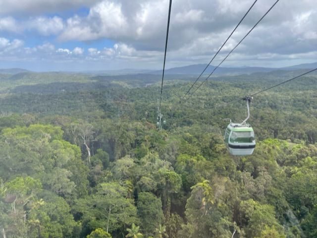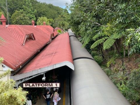 行きのスカイレール、帰りのキュランダ鉄道どちらも景色最高でした!キュランダ村はお土産やさんやごはん屋さんなど、散策するところがたくさんあって楽しかったです。アーミーダックは英語がほとんど分からず、ぼーっとしてたので、英語がわかる人ならもっと楽しめたかなと思います。