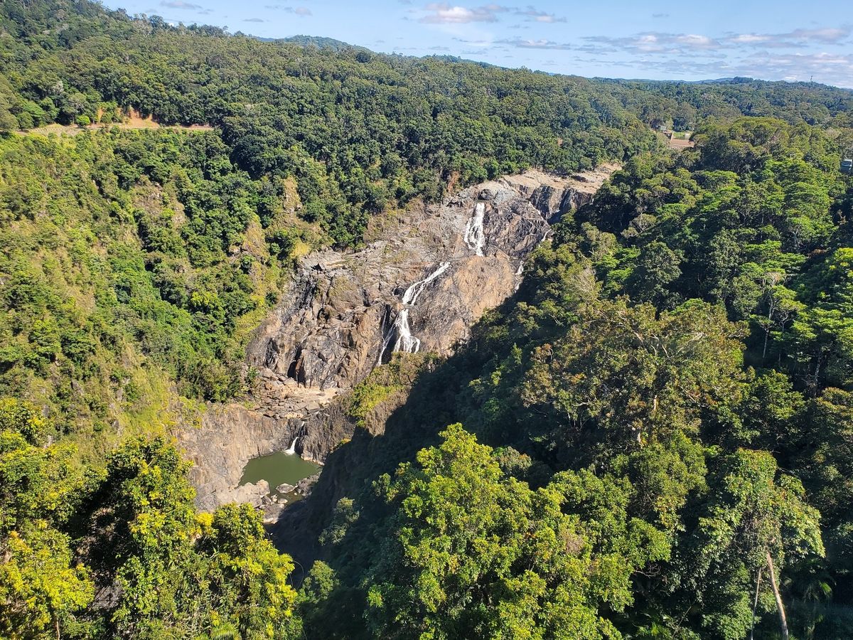 キュランダでは、観光案内所でもらった地図を頼りに散策路をウォーキングしました。全体で1時間半くらいのコースでした。歩いている人は少なかったですが、特にバロン川沿いの景色は素晴らしく、見上げるとスカイレールも見えました。