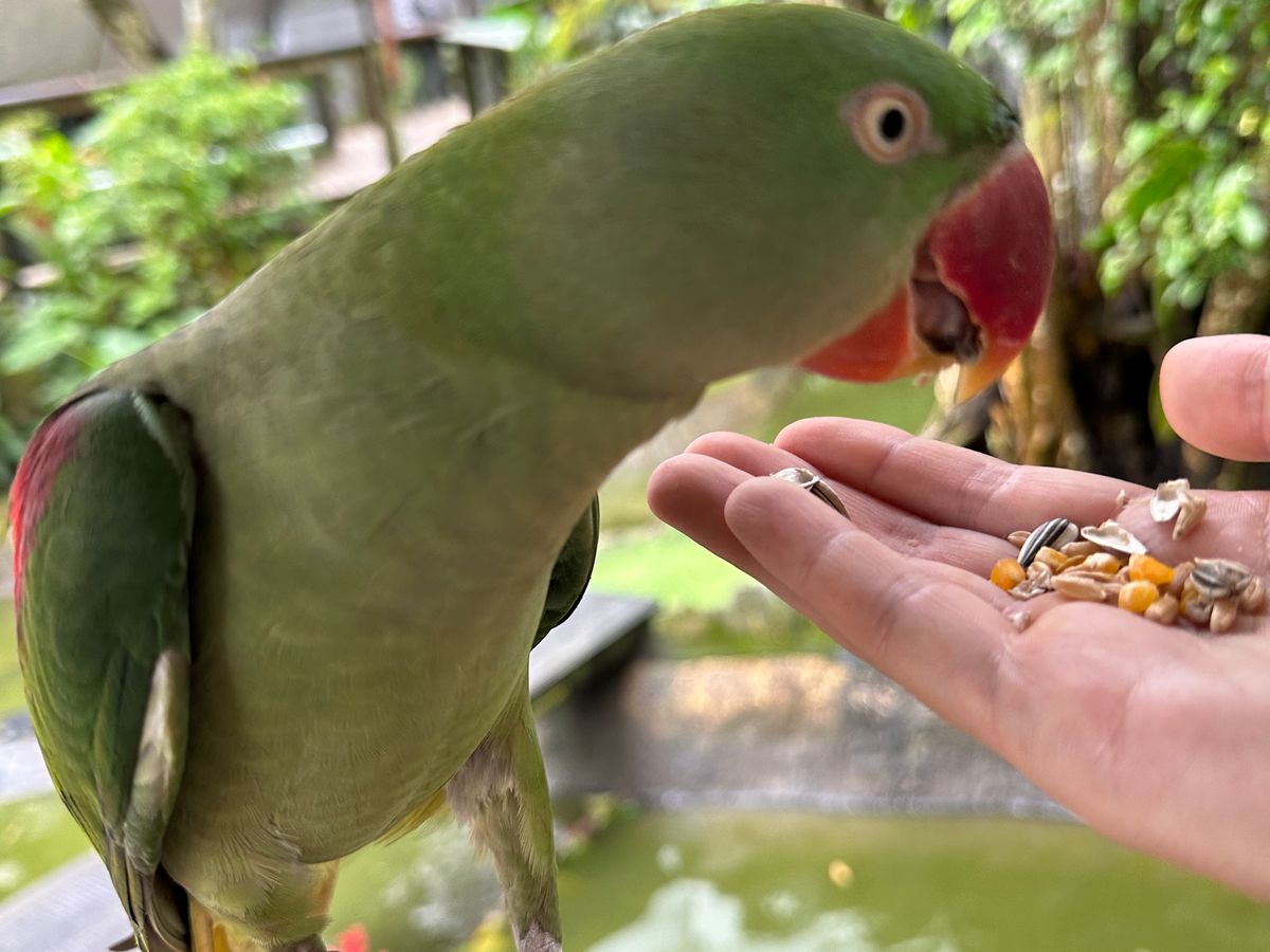 オウムの餌やりも楽しかったです。指を齧られました。