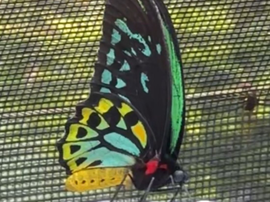レインフォレステーションからバスに乗ってキュランダ村に戻り、バタフライ・サンクチュアリーに入館して多くの蝶を見て楽しみました。