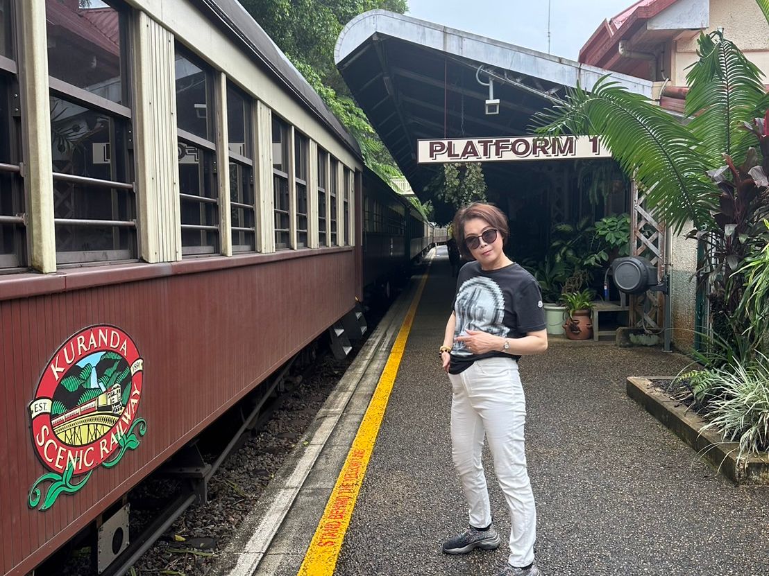 キュランダに着き、記念に写真だけでもと撮影しようと駅に行ったら14時の列車は運行していると知り、またそこから交渉して列車に乗せていただけることになりました。