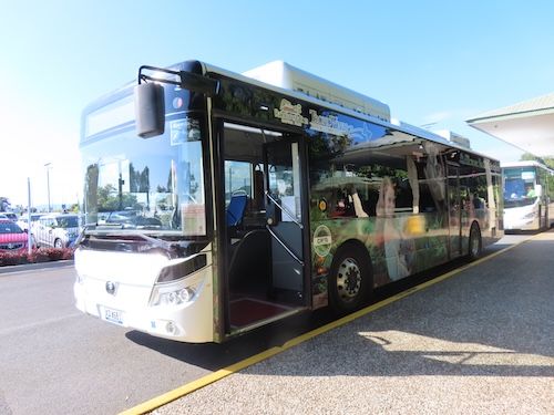 終点のスカイレール駅に併設された土産店には親切な日本語スタッフがいて、次のバス停の場所を教えていただきました。キュランダ村にてレインフォレステーション行きのバス停の場所を確認した後、出発時間までに軽く食事を済ませ、定刻(11時15分)通りバスに乗りました。