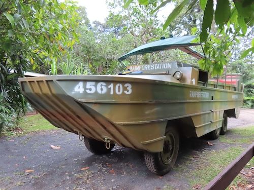 ここでは先ずアーミーダックに乗ります。ドライバーと助手が英語で冗談混じりにジャングルの生態を説明してくれます。途中、大きな池のようなところを船のように進みます。座席位置が高く、見晴らしがいいので楽しいです。