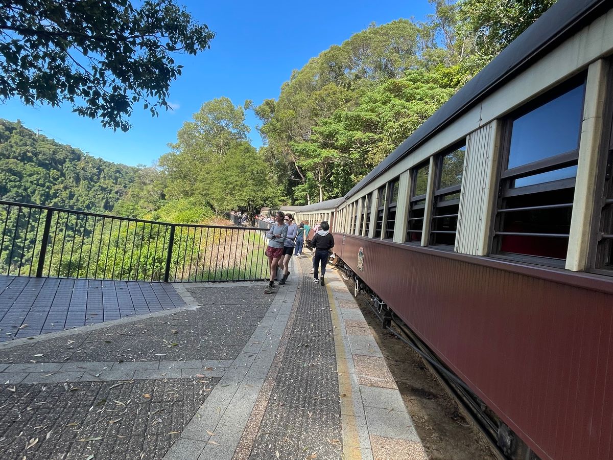 キュランダは、お土産屋さんが多いのでゆっくり見るのが、お勧めです。キュランダ鉄道は4人がけの長椅子でゆっくり座れ、途中のバロンの滝駅で10分の停車があり、撮影等ゆっくりできました。楽しい1日のツァーでした。