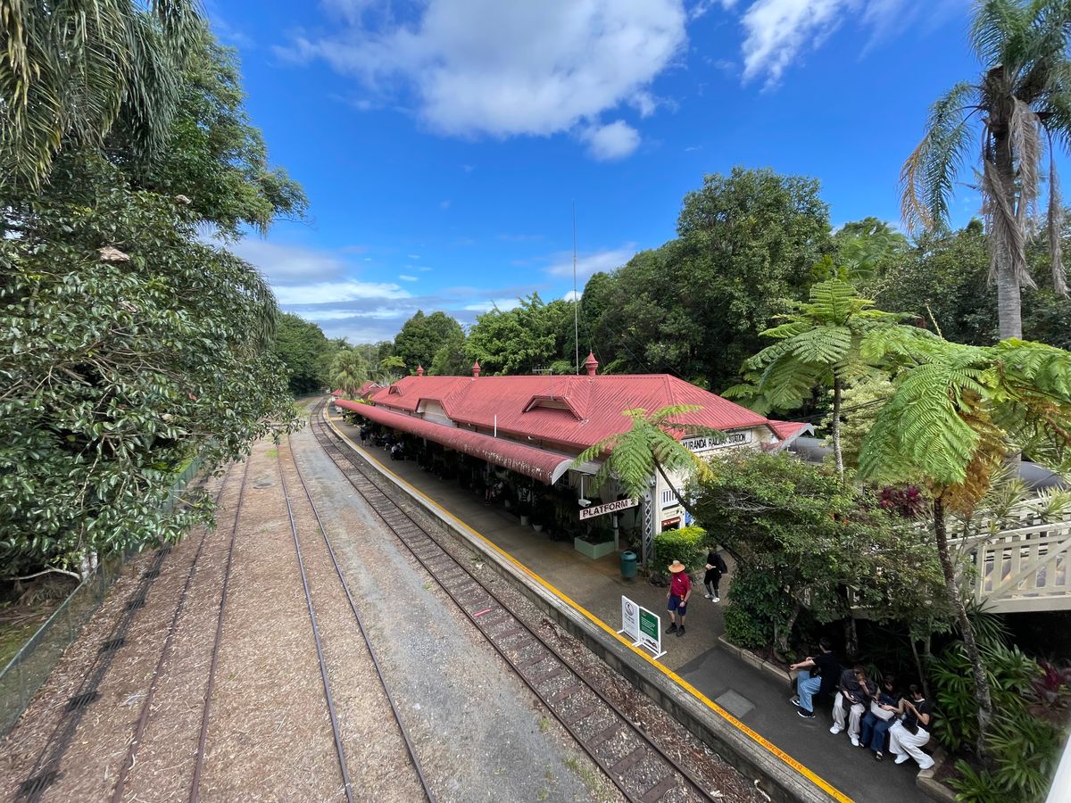 スカイレールはすべての駅に途中下車して観光してから、キュランダ村を散策、ちょうど良いタイミングに鉄道が出発します。