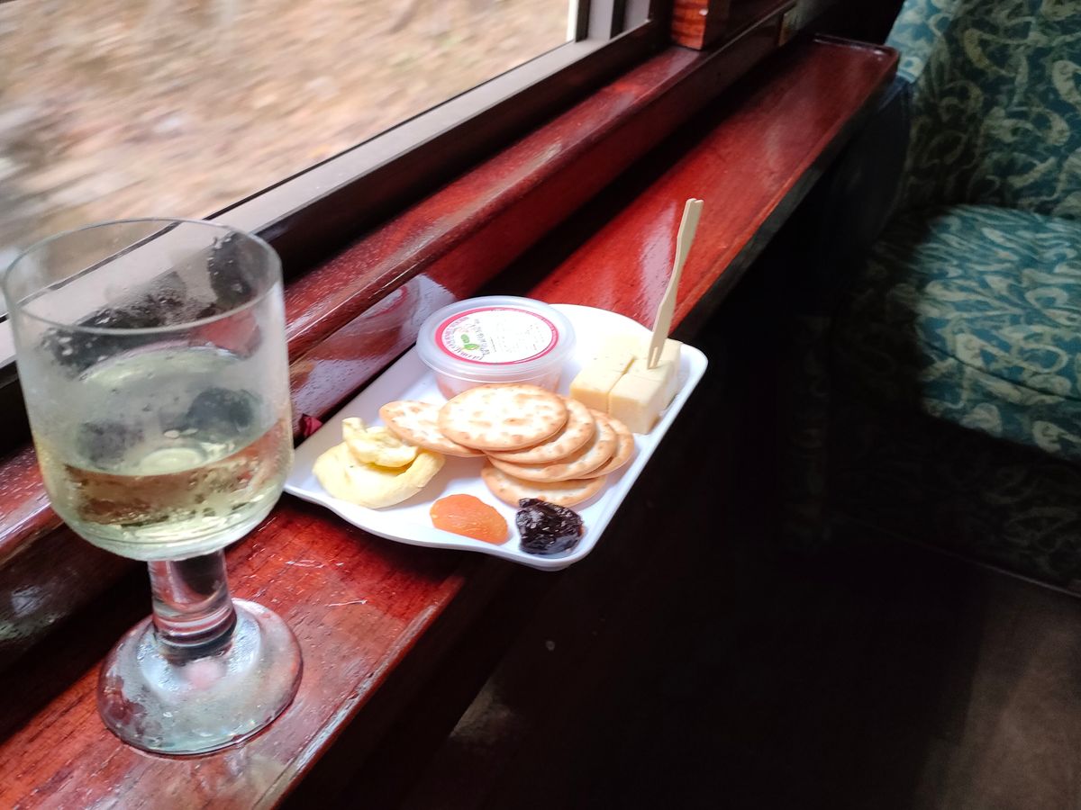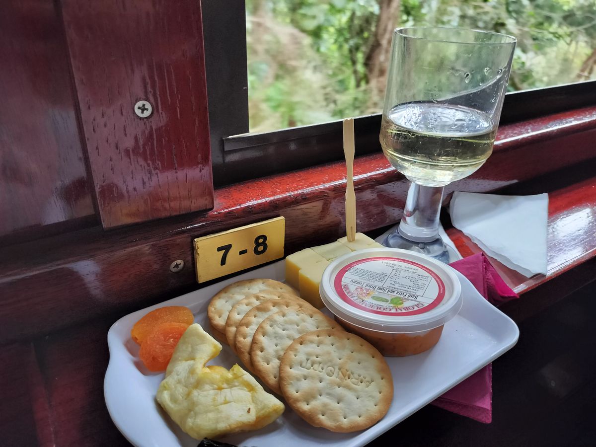 帰りはゴールドクラスにしました。フリードリンクとフードがつくだけでなく、車両が真ん中あたりなのでビューポイントで蛇行する列車などの写真も撮りやすいのがメリットだと思いました。