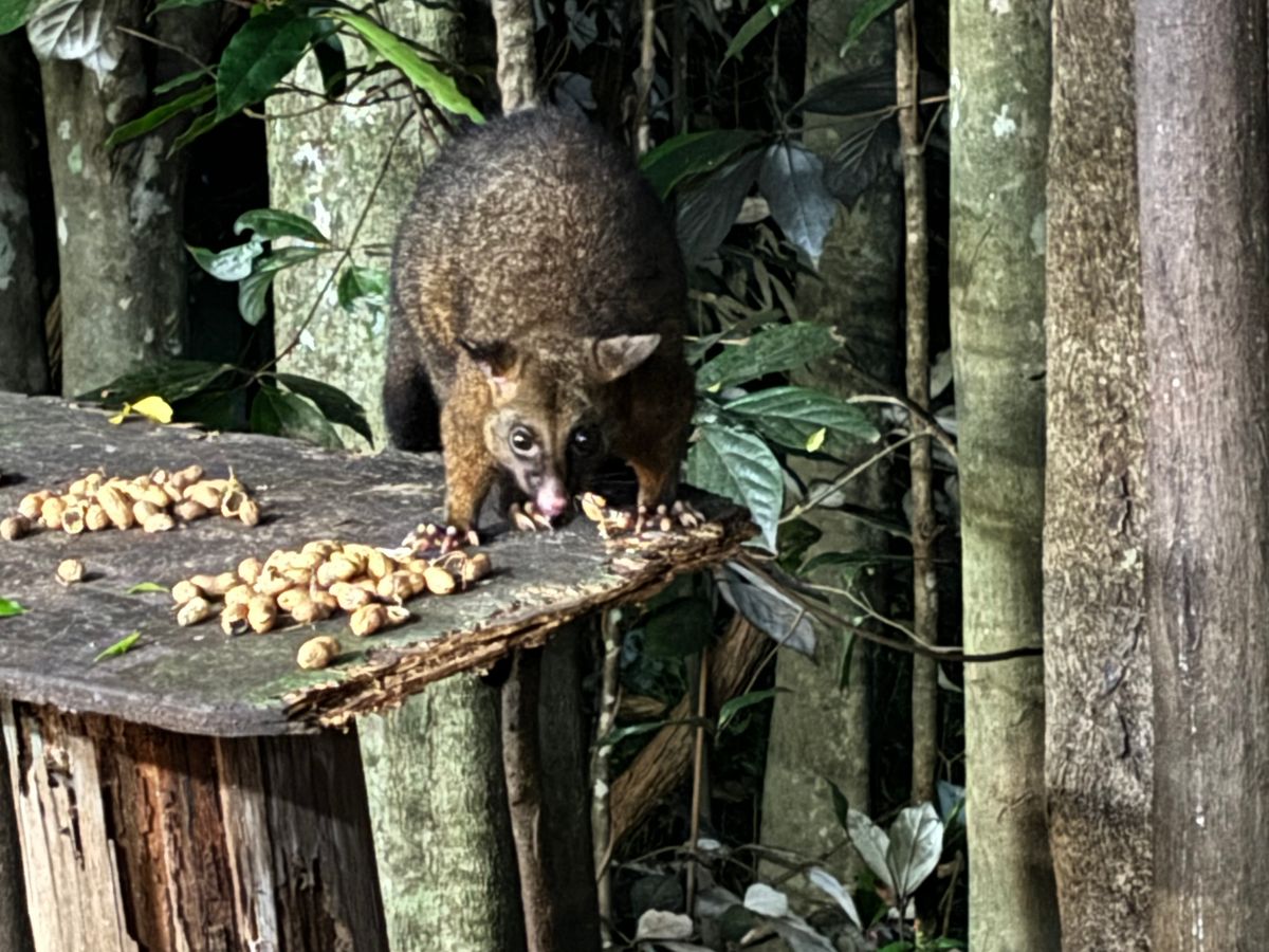 動物探検の方も充実していました。私たちが参加した時はあいにくの雨天でしたが、それでも素晴らしい観察眼で動物たちを見つけてくれ、野生のエリマキトカゲやロックワラビーを始め、見つけることが難しいカモノハシにも2度も会うことができました。
