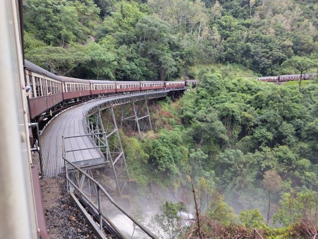 往復スカイレールでも天気が良かったので十分に楽しめましたが、復路のスカイレールの最終区間が30分ほど動かず足止めとなりました。キュランダ村は思ったより個人的には観光するところがなく、予定より1.2時間早いスカイレールに乗って駅まで戻りましたが、ちょうど来ていた送迎バスに乗車させてくれ、待ち時間少なくケアンズまで戻ることができたのが良かったです。