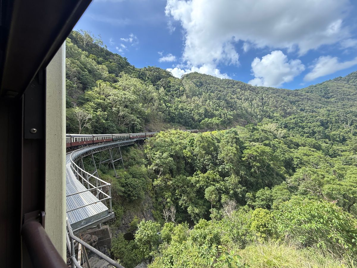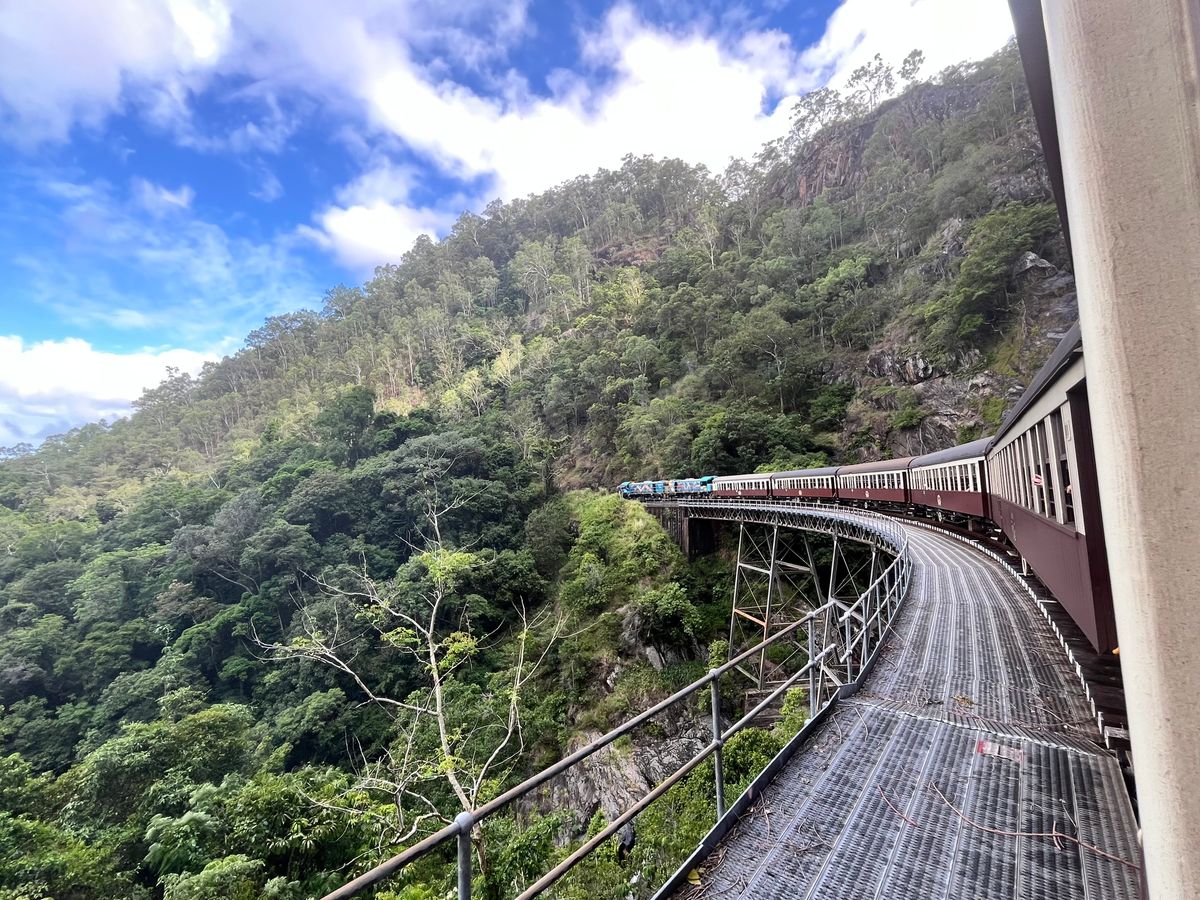 帰りのキュランダ鉄道は、かなりゆっくり走ることもあり結構暑かったです。もう少し涼しい時期の方がより快適かもしれません。