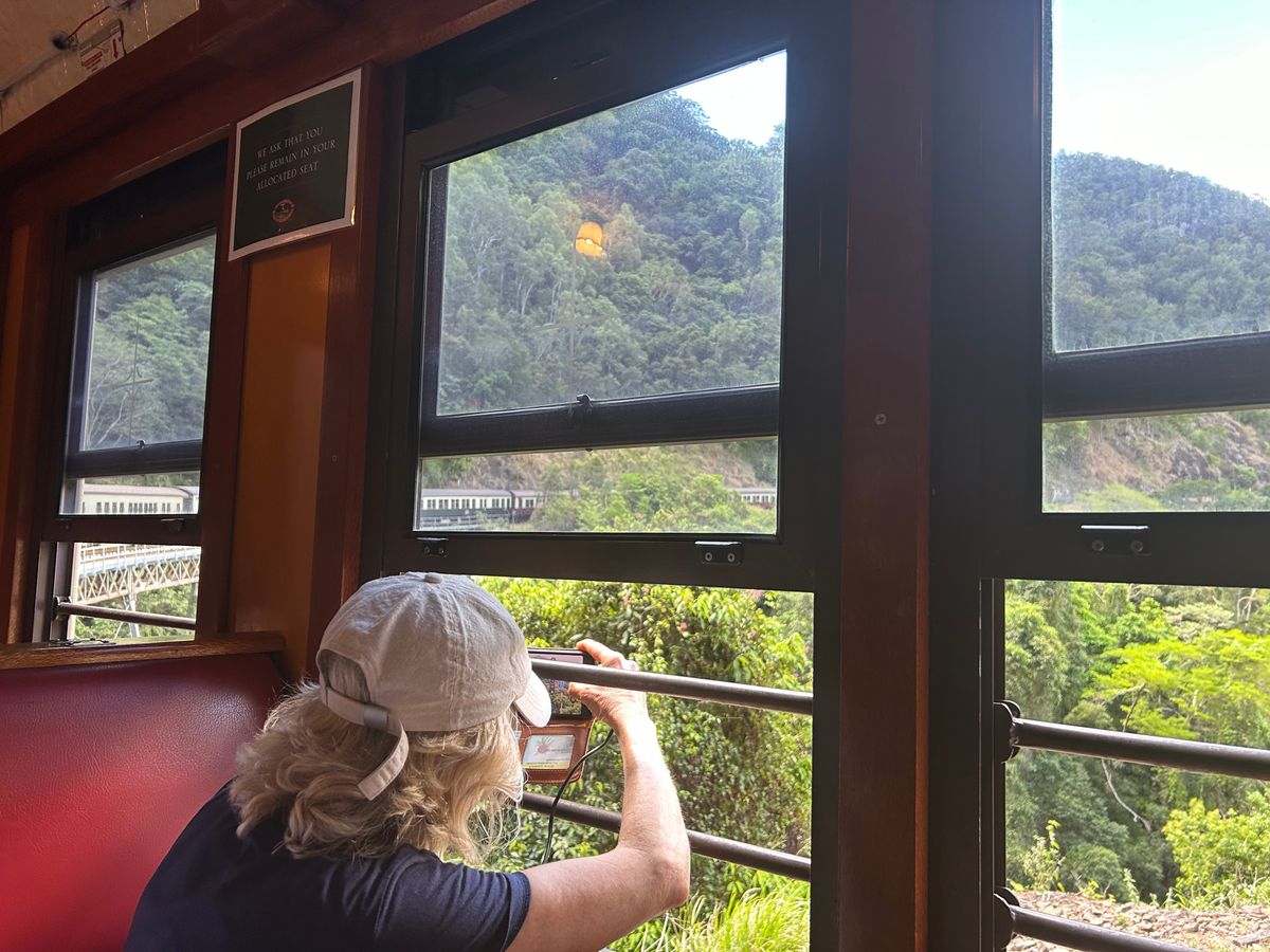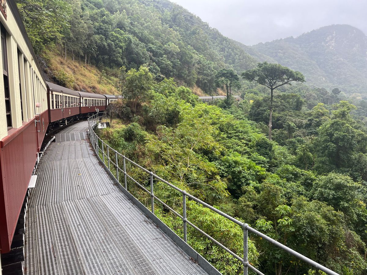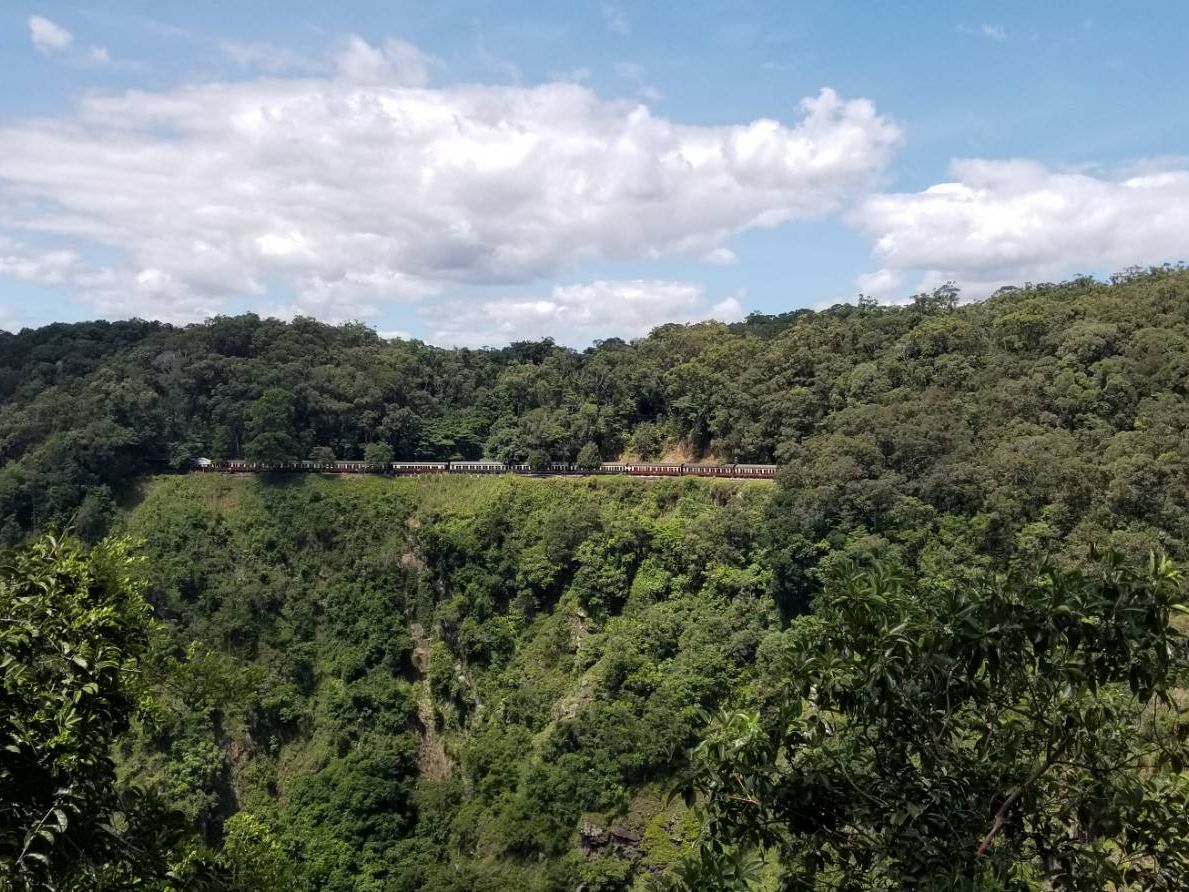キュランダ鉄道は15両くらいあり、余裕を持って座席を探した方がいいと思います。窓側の席ではなかったのは残念でした(これは運なのでしょうがないです)。途中駅で10分ほど下車する時間があり、バロン滝や鉄道を撮影することができます。「これぞキュランダ!」という写真が撮りたい方にオススメです。
