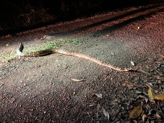 野生動物観察ツアーはガイドさんが素晴らしくいろいろなことを勉強できました。カモノハシと木登りカンガルーは見られませんでしたが、野生のカンガルーを何匹も見られたし、野生のエリマキトカゲや蛇、ポッサムも見られました。ブーゲンビリアやアボカドやバナナの木、植物のことも教えてもらえ、子供達も興味津々で終始楽しそうにしていました。最後に満点の星空を畑で眺めてとても充実した濃い1日になりました。