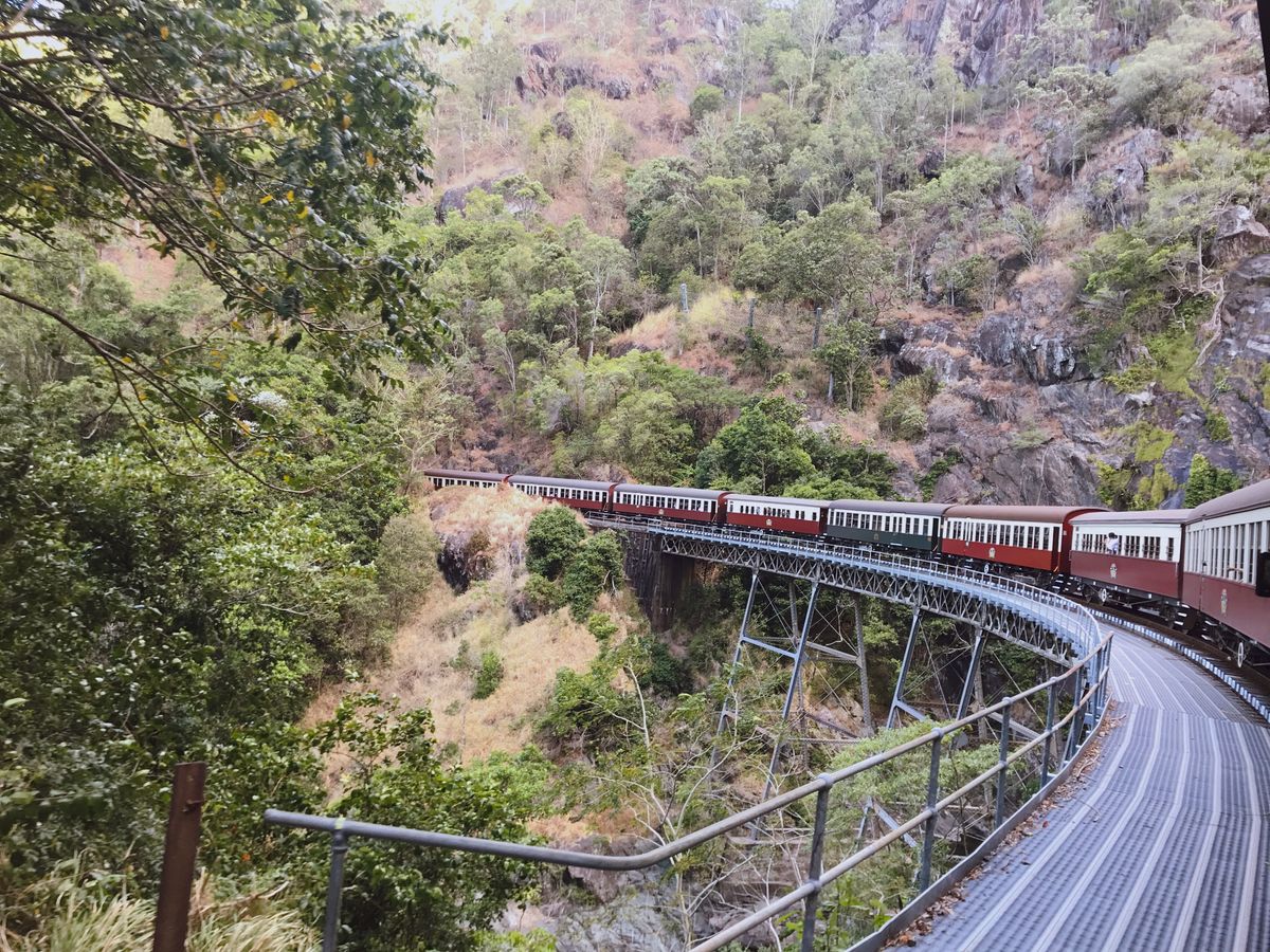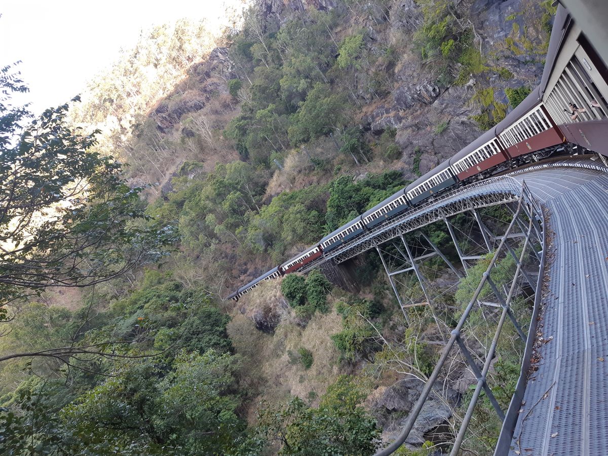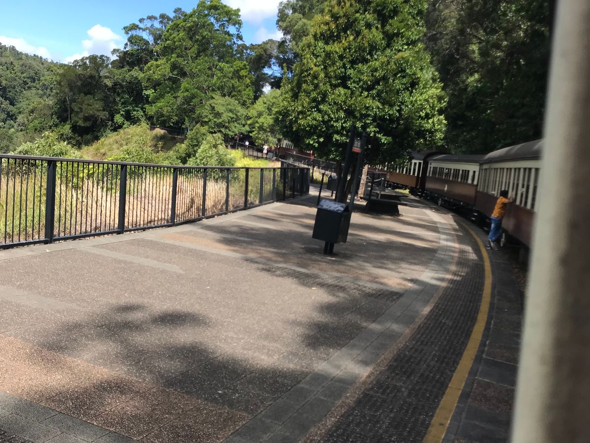 キュランダ への行きは鉄道、帰りはスカイレールでした! 鉄道も皆が平等に景色が見れるように席を交代してもらえるのが良かったです。