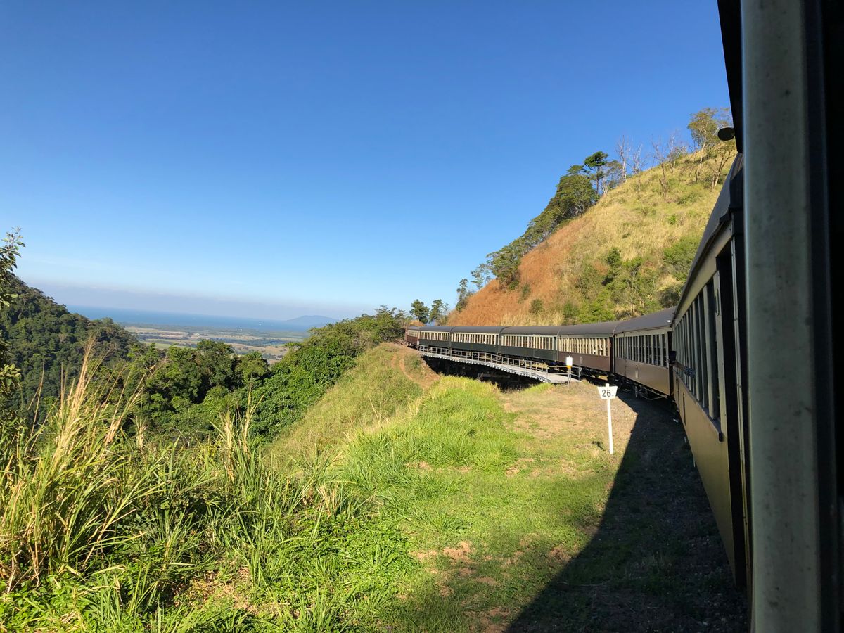 初めてのキュランダでした。行きのスカイレールは高くて長く絶景でした!途中駅で素晴らしい滝も感動しました。またスタッフもフレンドリーで、片言ながら日本語も話され好感持ちました。ただし時期的に寒目で8月は上着必須です。帰りのトロッコも風情があり楽しめましたが、疲れと揺れで1時間程寝てしまいました 苦笑