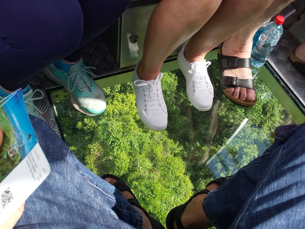 ダイヤモンドビューのゴンドラは何回かに1回のため、各駅でダイヤモンドビューのゴンドラが来るまで待つ必要がありますが、真上から熱帯雨林の様子を見ることが出来ました!地面付近を流れる川の様子や低いシダの群生は、通常のゴンドラでは見ることが出来なかったと思います。鳥の目線になって足下を覗く体験は高所が苦手じゃない人にはオススメです!