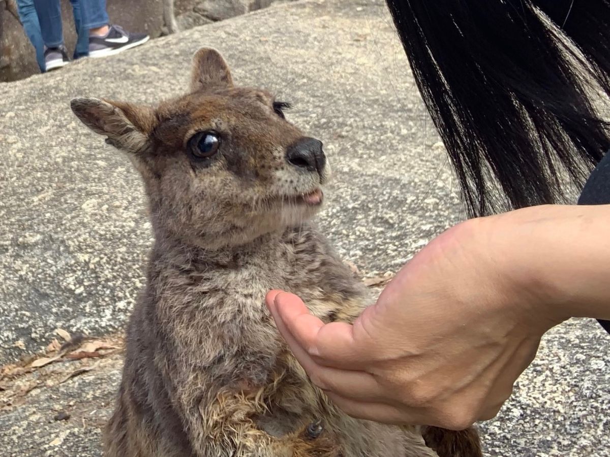 また、野生動物探検ツアーでは、ロックワラビーの餌付けがとても可愛らしく、たくさんの野生動物に触れられて、大満足でした。