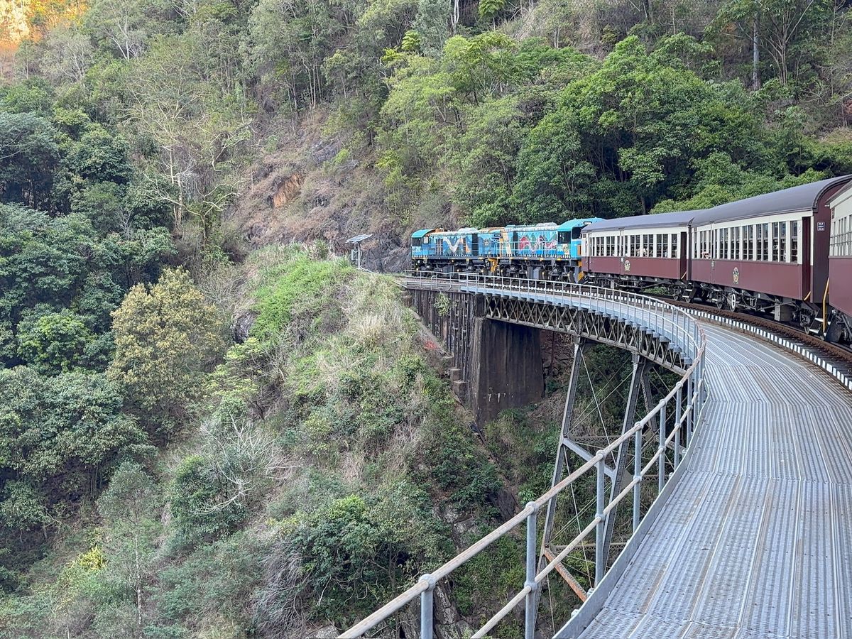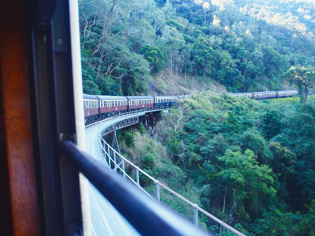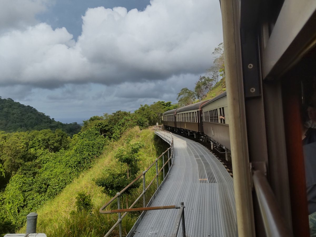 初めにスカイレールで上がって行き、帰りキュランダ鉄道に乗って降りてくるイメージです。スカイレールも心地良かったですし、のんびり鉄道の旅は自然を間近に感じれて癒されました。