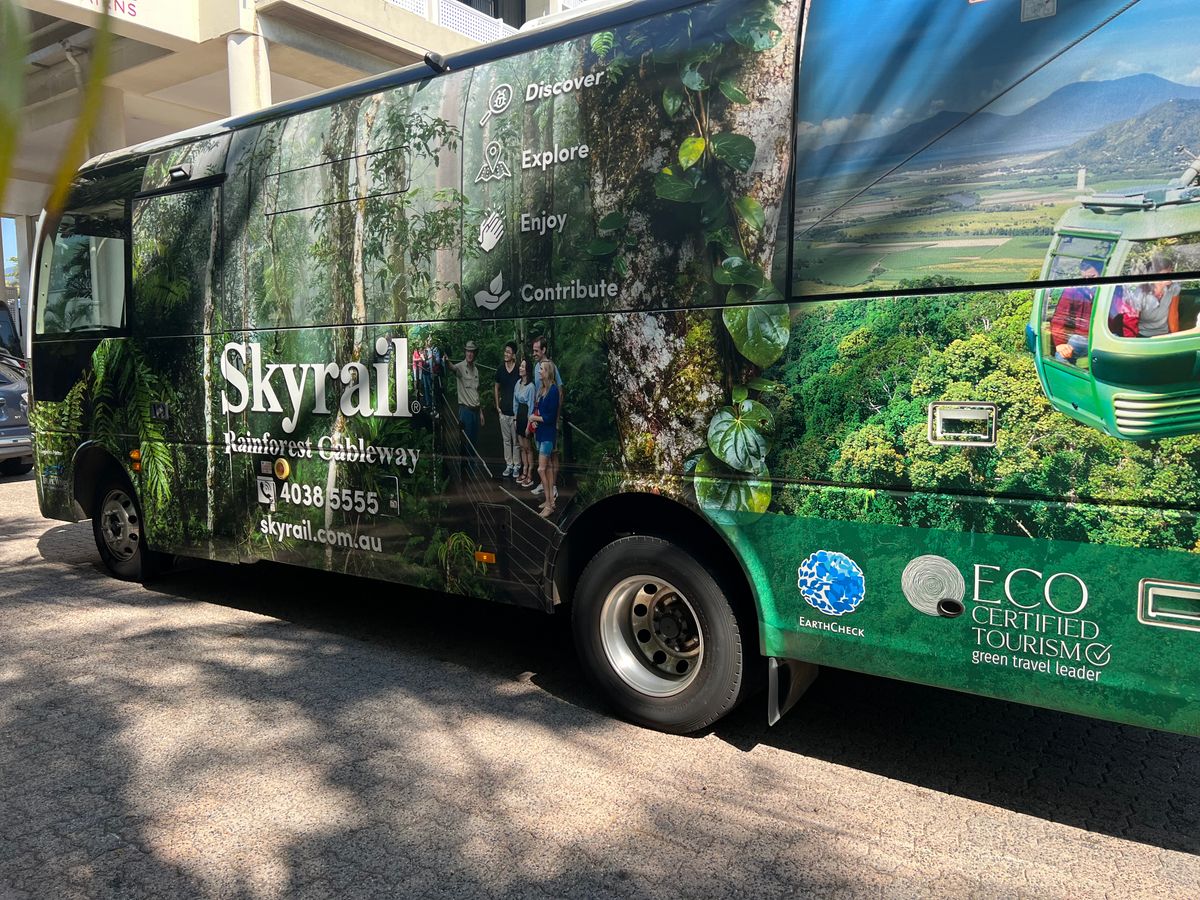 時間通りにskyrailと書かれたバスがお迎えに来てくれました!8時台のピックアップがこのプランだけだったのでこちらを選びました。14:00からか15:30のお迎えで悩みましたが子供2人がワラビーの餌やりに夢中になったり、コアラと写真たり、有名なGerman Tuckerでホットドッグをたべたり、キュランダコーヒーを飲んだりとしているとあっという間に15:00過ぎに。15:30の列車にしてよかったです。もし時間変更したいときはskyrailに電話すれば対応してくださるそう。熱帯雨林やバロンフォールのオーストラリアでしか味わえない景色は忘れられない思いでになりました。
