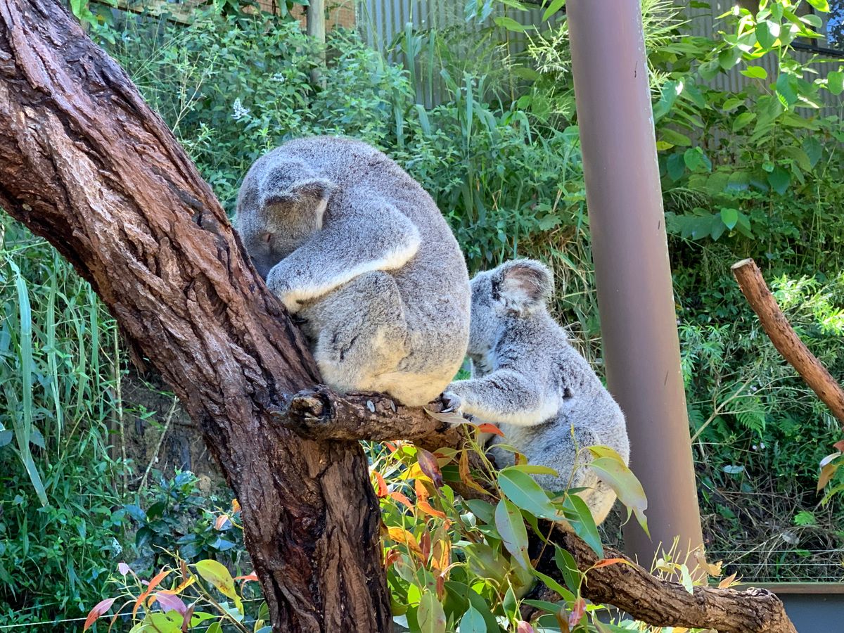 決して広いスペースではありませんが、入園するとオーストラリアならではの動物の多くと出会えます。コアラは木の上で器用にお地蔵さんのように寝ているのが、とても愛くるしく、癒されました。
