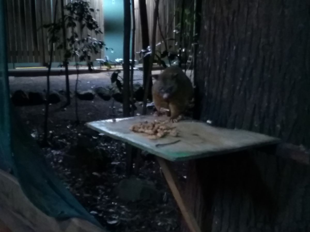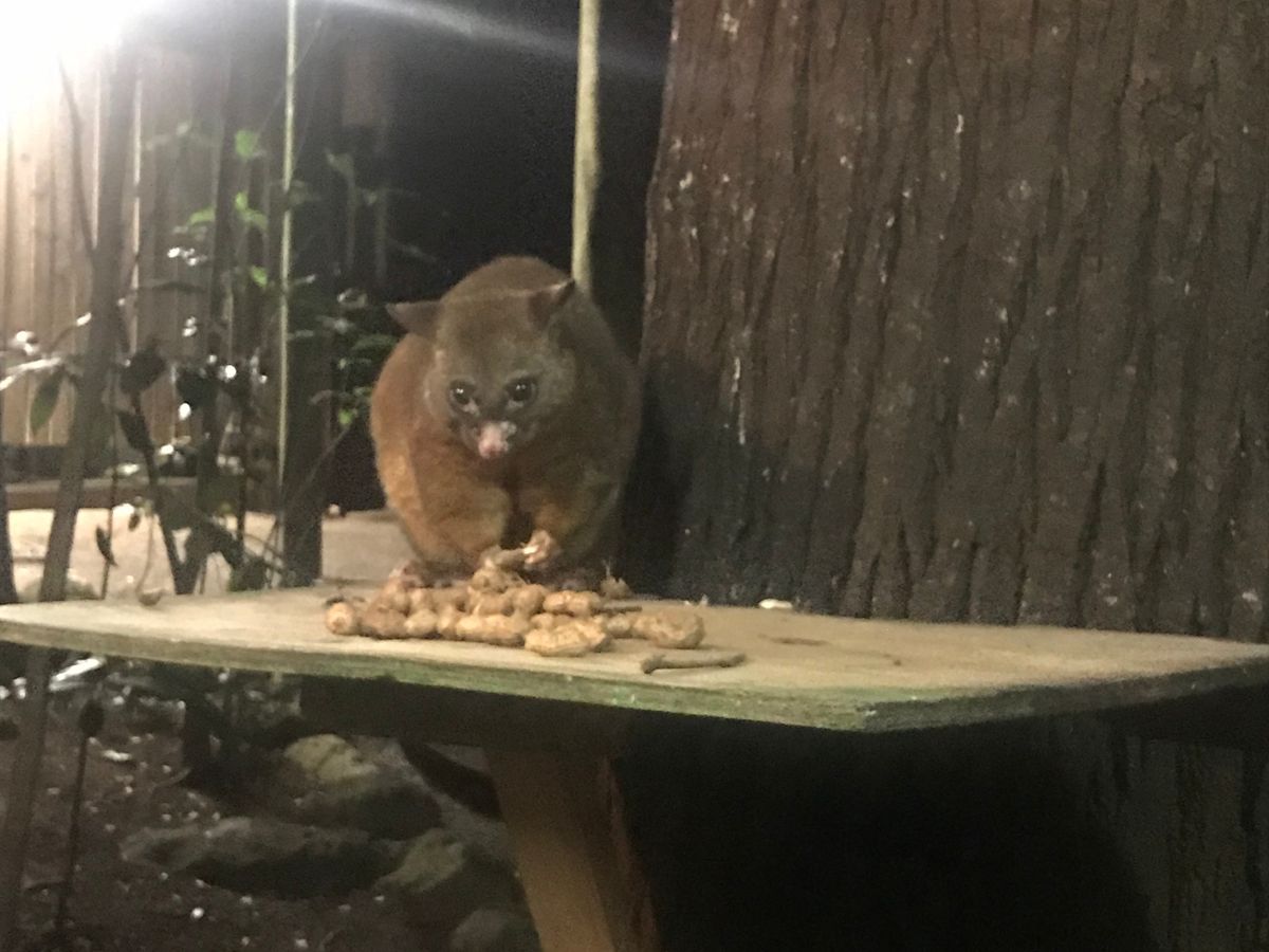 ガイドの明人くん。物知りで親切。蟻塚や絞め殺しのイチジクも良かったけど、一番はワラビーです。いっぱい寄ってきてとてもかわいかった。自分の手から餌を食べてくれて、触れて、初体験に感動しました。老若男女楽しめます。スカート・素足にサンダルの人がいましたが、夜の熱帯雨林も歩くのでかぶれないようズック・(長)ズボンの方が良いと思いますヨ。