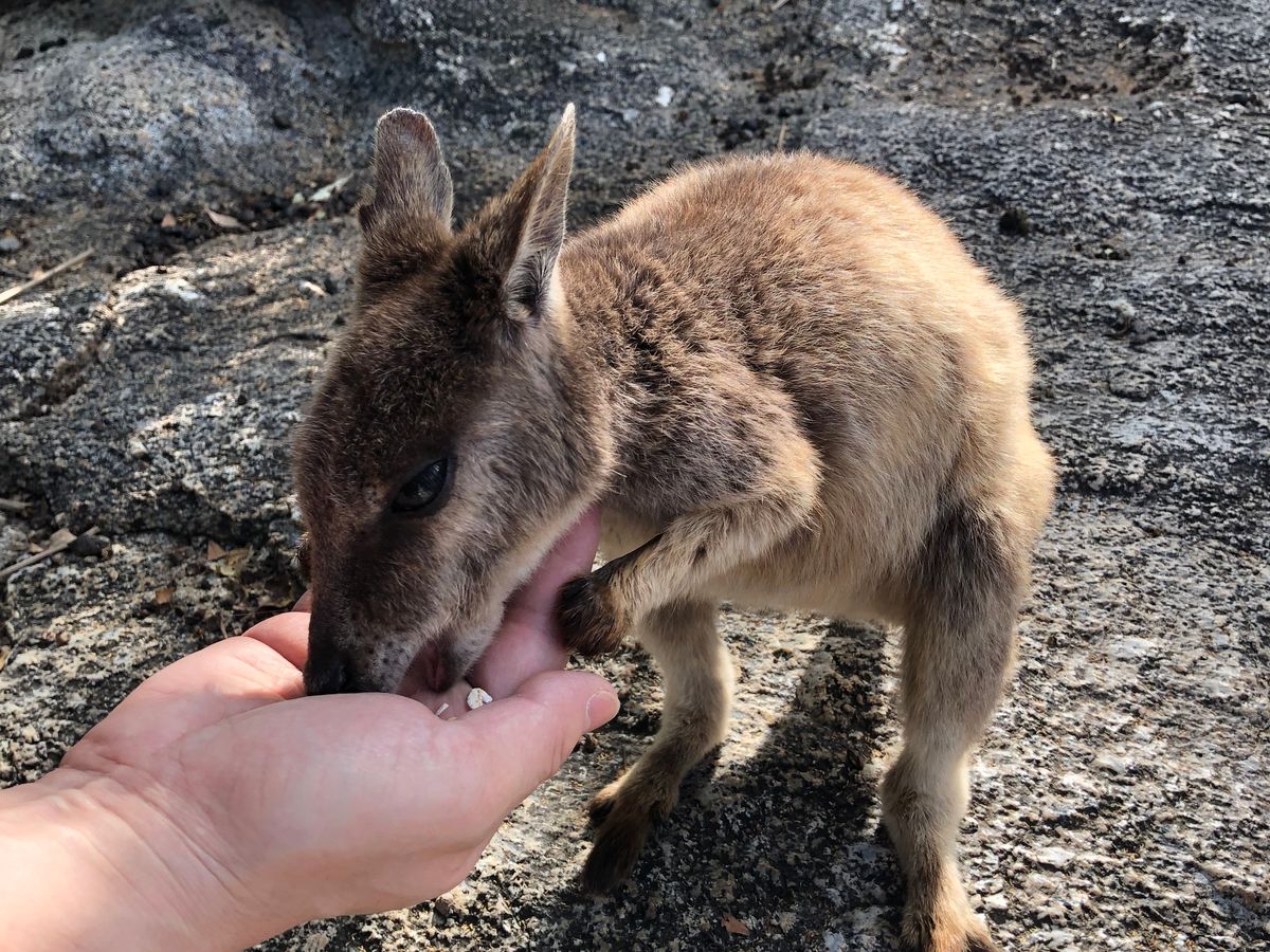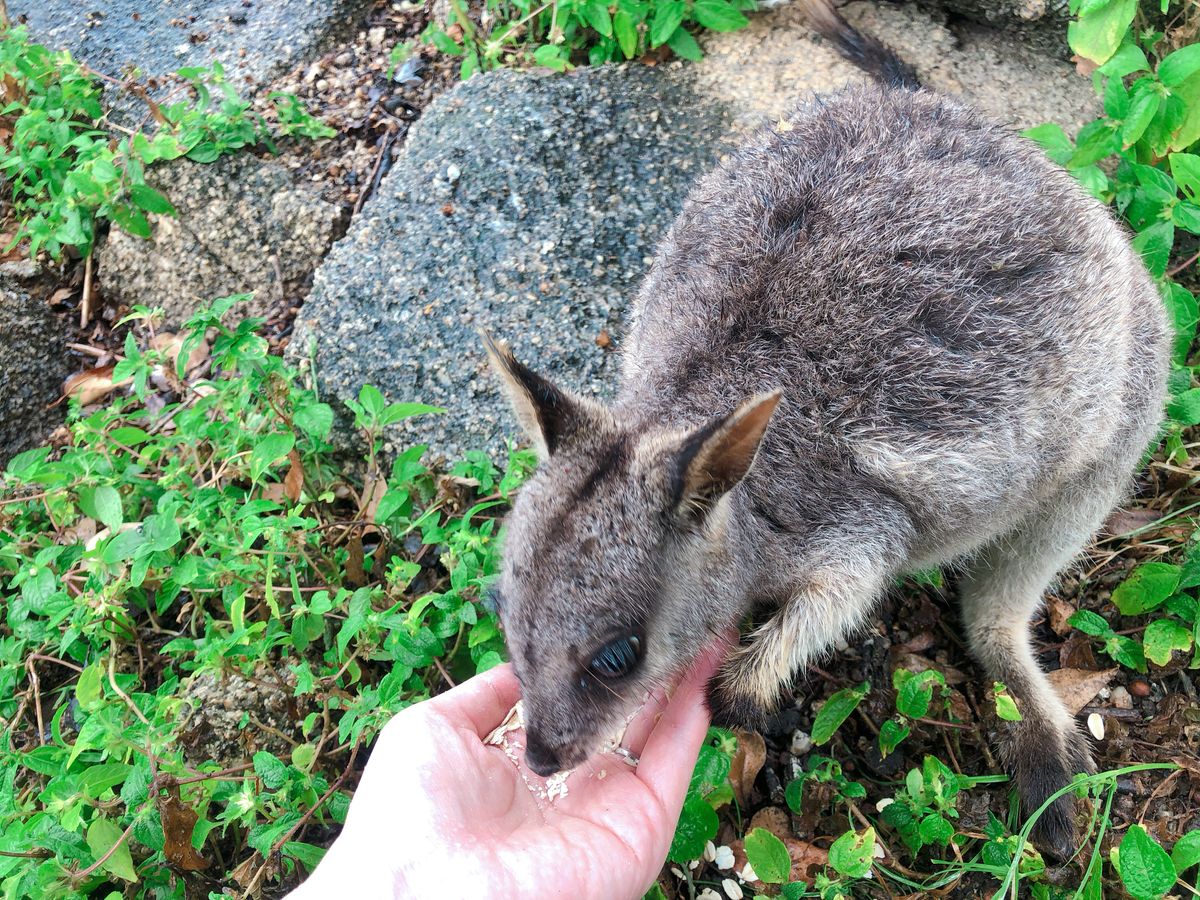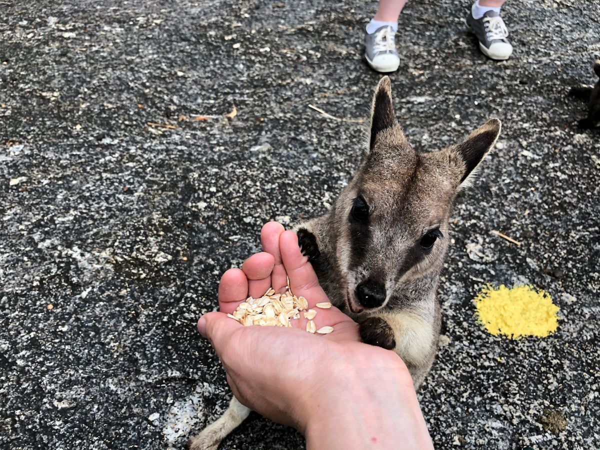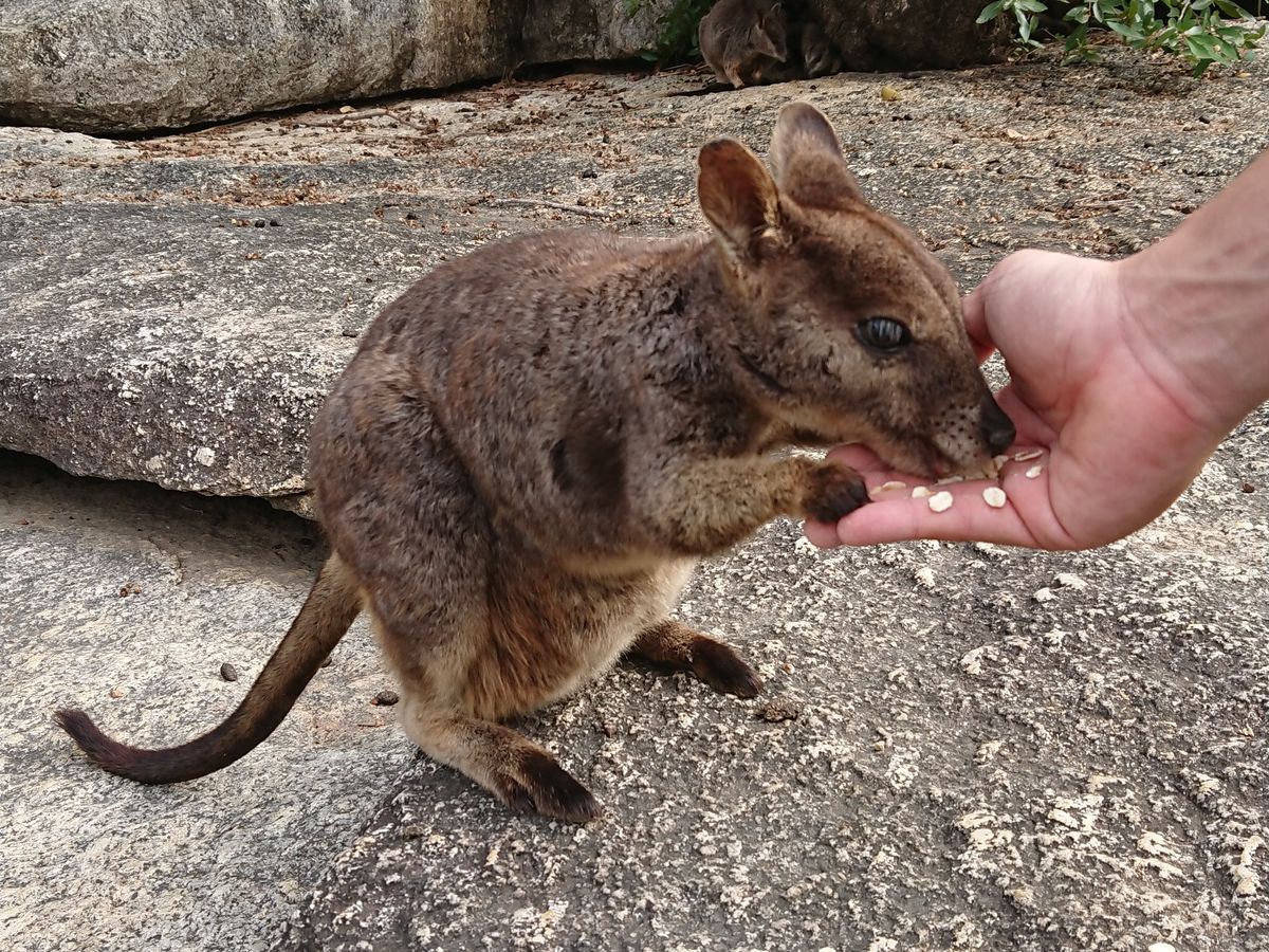 ・手から餌付けできるロックワラビーたち