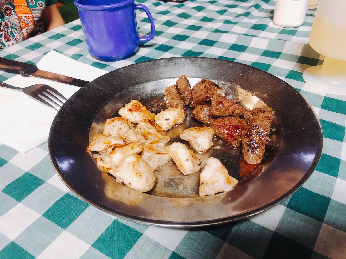 ディナーでは、カンガルーとクロコダイルをステーキで。