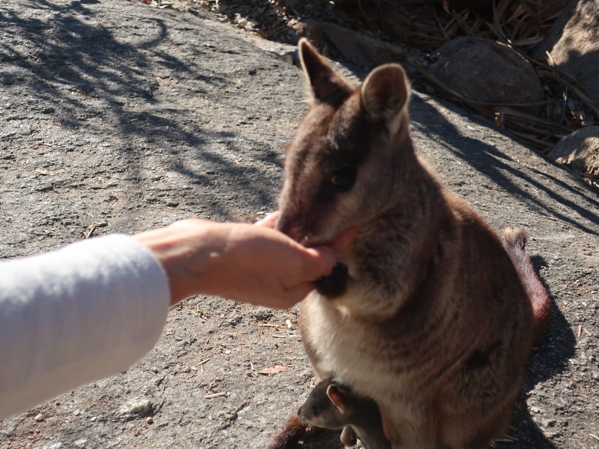途中でロックワラビーに餌をあげたりカモノハシを探したり日本では出来ない体験が出来ました。