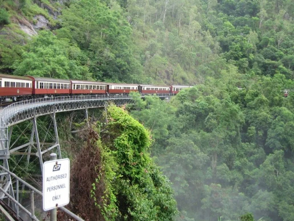 スカイレールは綺麗だけど後半飽きます、、、キュランダ鉄道は朝9時にチケット引き換えたけどめちゃめちゃ前方車両&席離れ離れで萎えました