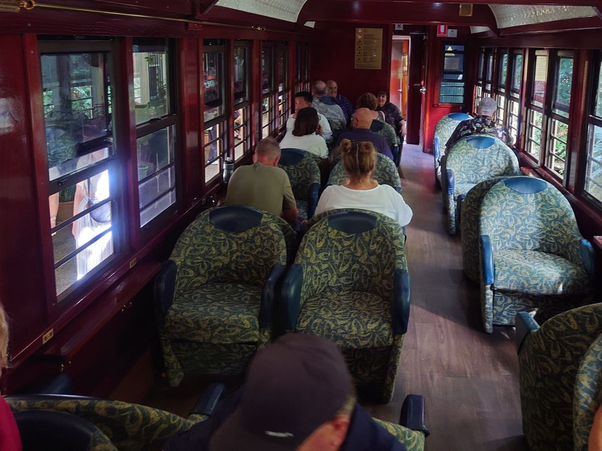 キュランダ鉄道は、ヘアピンカーブを実際に見れて感動でした。座席は指定席で日本人で固まっている感じです。途中で駅に10分間停車するので、外に出て自然を堪能できます。