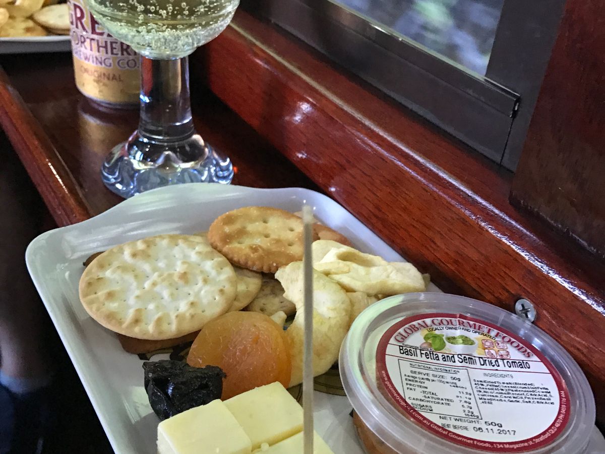 帰りは列車で。チケット交換時に頼んで窓側の席に。キュランダで買ったコーヒーとミートパイを列車の中で食べました。美味しかったです。景色も良いです。