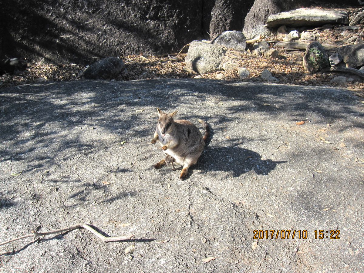 ロックワラビーへの餌付けは、目がクリっとしていて、手をつかんで餌を食べてくれてとてもかわいかったです。また赤ちゃんが袋にいるワラビーにも会えました。