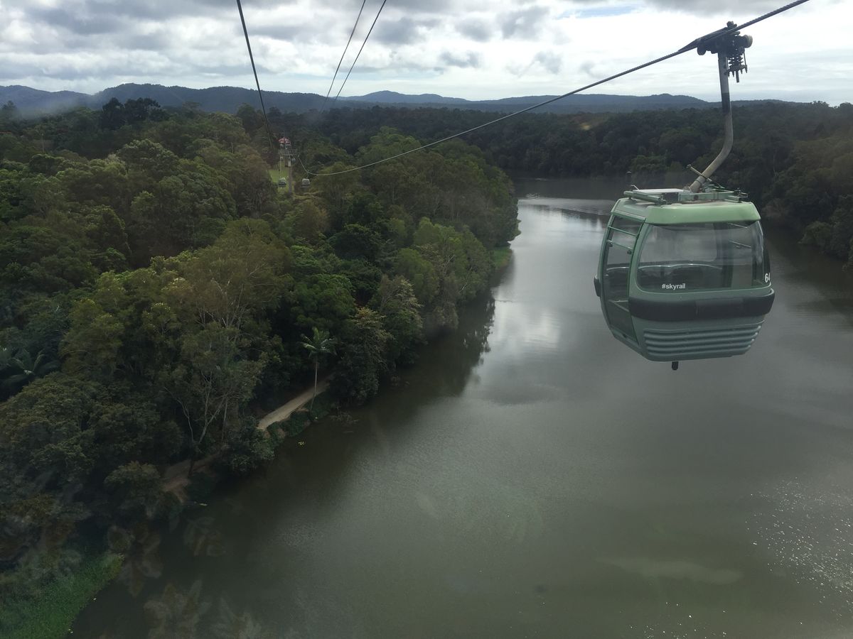 スカイレールは1本ではなくて、乗り換えの時にジャングル散策もできるし、途中で帰りに乗る筈の鉄道と滝が見えてとてもきれいでした。キュランダではアーミーダックに乗ったり、動物園に行ったりしてあっという間の滞在でした。