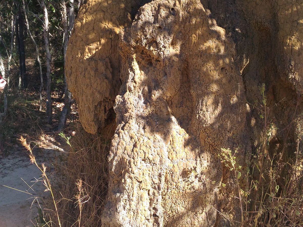 巨大アリ塚は下車して、シロアリをみんなで食べました。ドキドキでしたが、味はパセリのような少し苦味と青臭さがあり総合的にミントの香りで意外と平気でした。アリ塚は一つかと思っていたら、あちこちに巨大なアリ塚があり驚きました。
